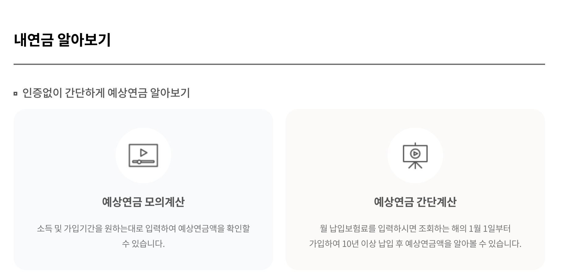 아래 버튼을 클릭하면 국민연금 납부액 및 국면연금 예상 수령액을 간편하게 조회해 볼 수 있습니다.