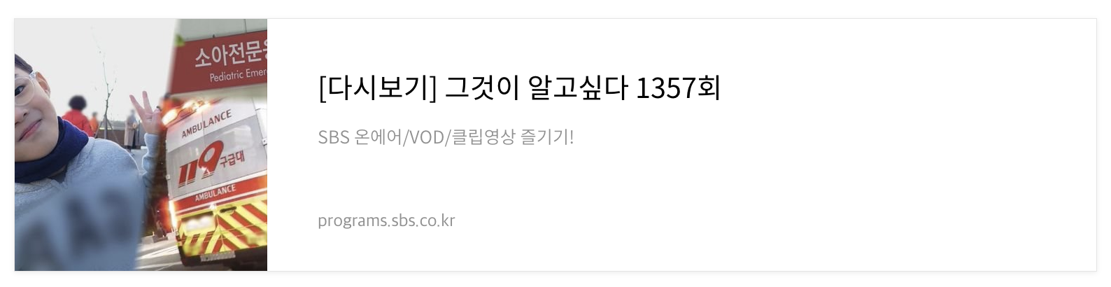 물론 연휴기간에 발생한 일이라고 하지만 대형 병원들이 많은 서울에서도 이런 일이 일어나고 있다고 하는데요, 어제 방송한 '그것이 알고 싶다'에서도 5살 정욱이가 열이 나고 기침 소리가 이상해, 5월 6일 오후 10시경, 119에 신고를 했음에도 불구하고 이른바 응급실 뺑뺑이를 하다 80분이 지나서야 그나마 입원은 불가하고 치료만 할 수 있는 병원에 갈 수 있었다는 이야기를 다루었습니다. 치료만 제대로 받았다면 사망에 이르지 않았을 급성 후두염이란 병으로 아이가 사망했다는 것이 무섭기도 했고, 정욱이 부모님 말씀처럼 우리나라 수도인 서울에서 이런 일이 일어났다는 게 너무도 충격적이었던 것 같아요. 서울이 이런데 지방에서 아기를 키우는 부모들은 어떻게 하라는 건지 안타까움과 공포감이 들었던 것 같습니다.