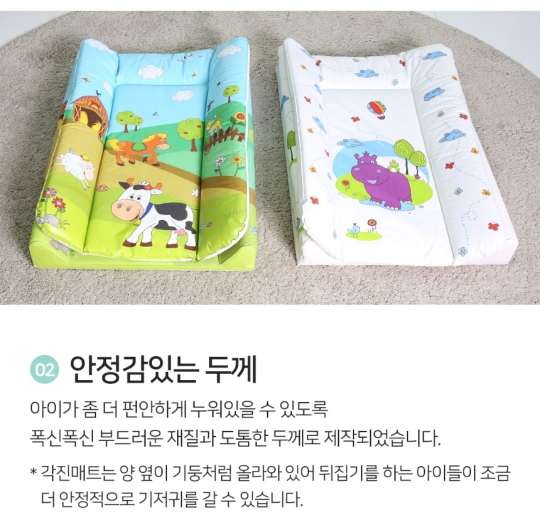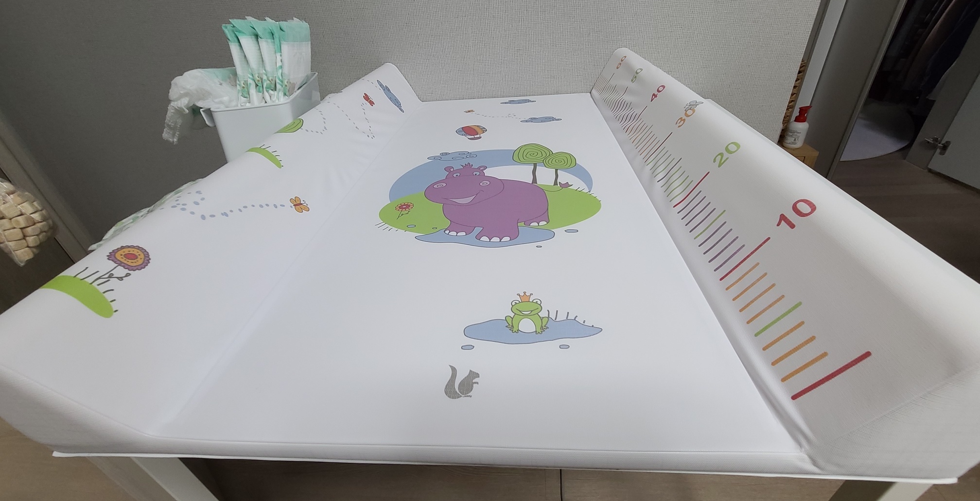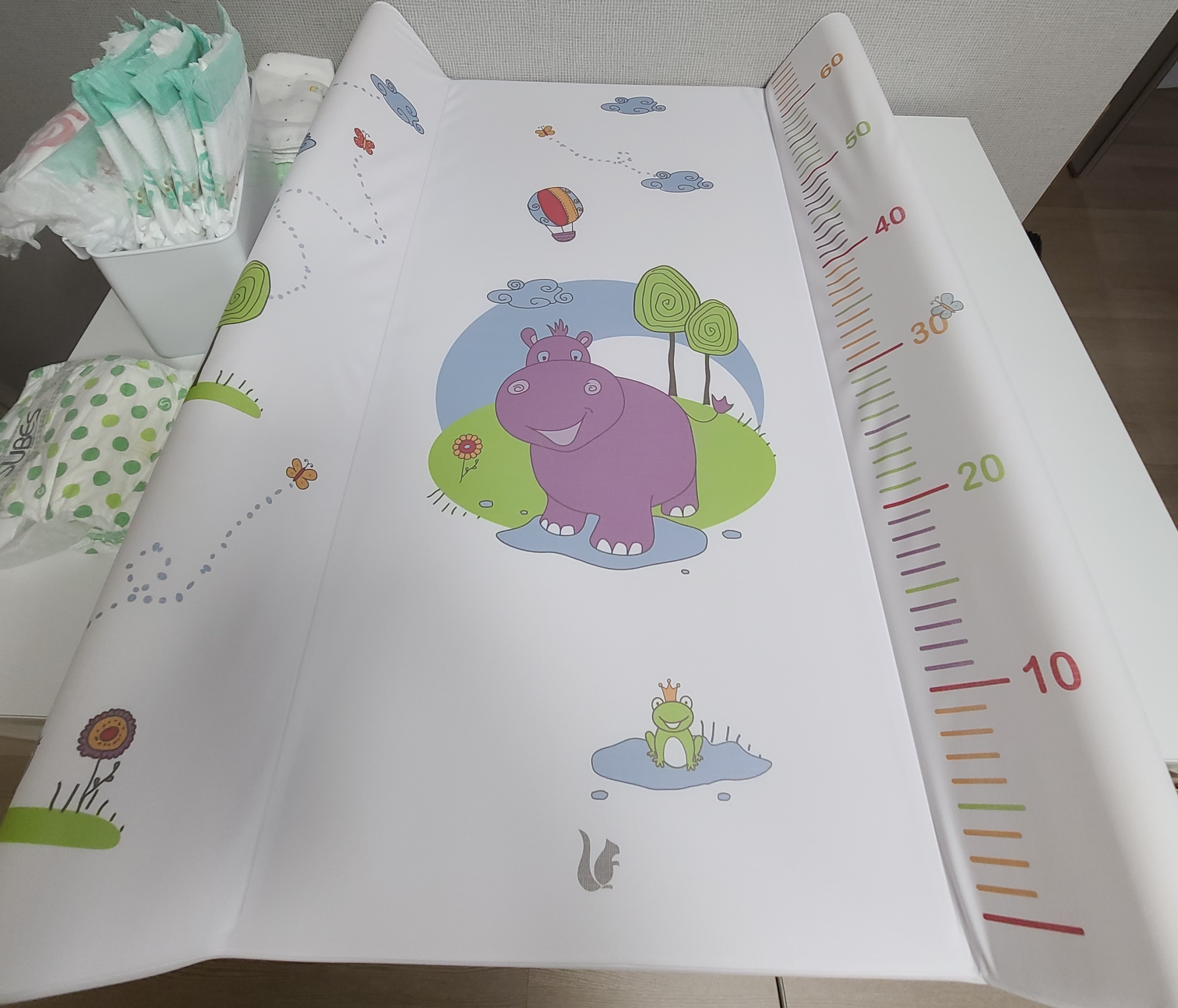 시중에 다양한 기저귀 갈이대들이 있고 테이블처럼 생긴 제품을 보통 엄마들이 많이 사용하시던데 제가 선택한 것은 테이블 위나 바닥에서도 사용 가능한 제품이었어요. 구입할 당시, 나중에 바닥 생활을 하게 될 때도 사용할 수 있는 제품을 구입하고 싶었거든요.