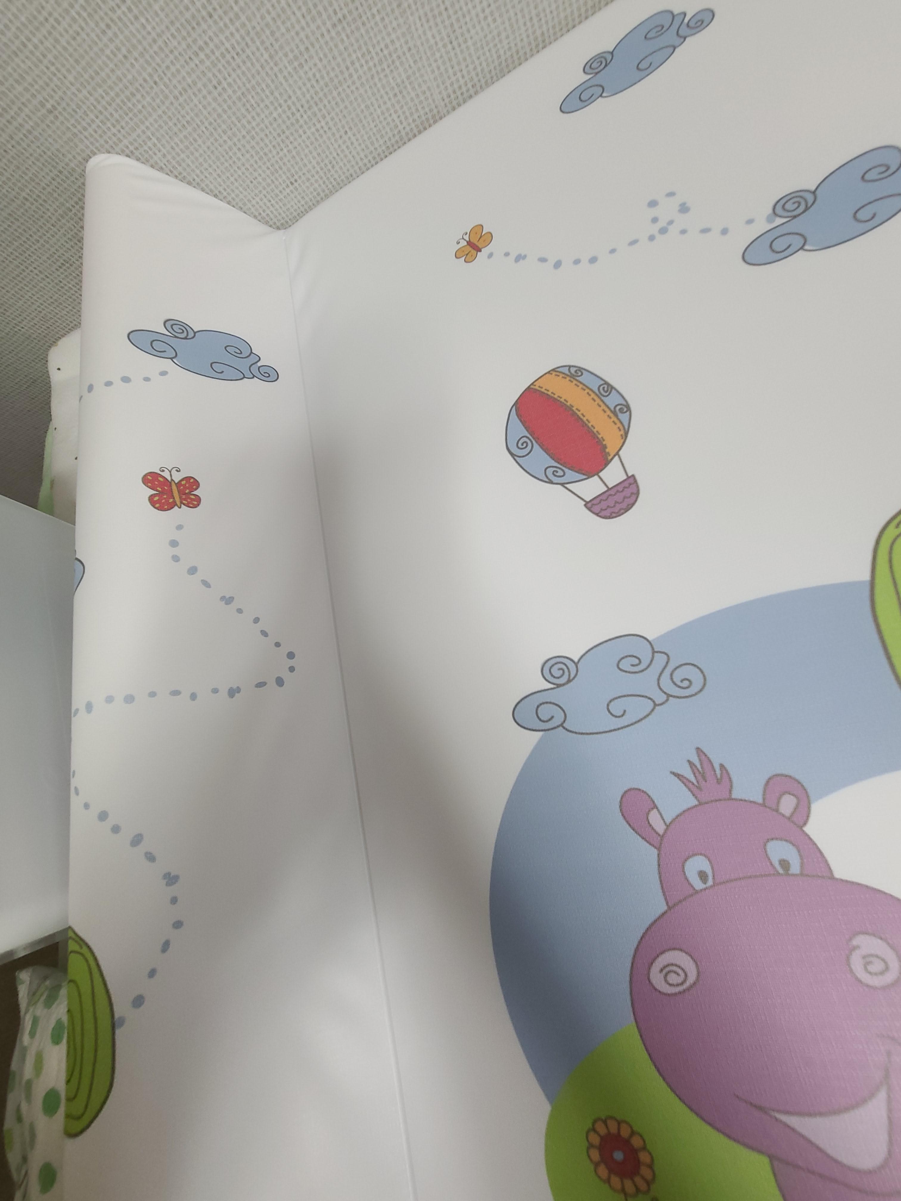 저희 딸은 무언가가 보이기 시작하면서부터 갈이대 옆에 있는 그림 보기를 좋아했는데 지금도 기저귀를 갈때마다 손으로 구름과 나비를 열심히 잡으려고 하네요.