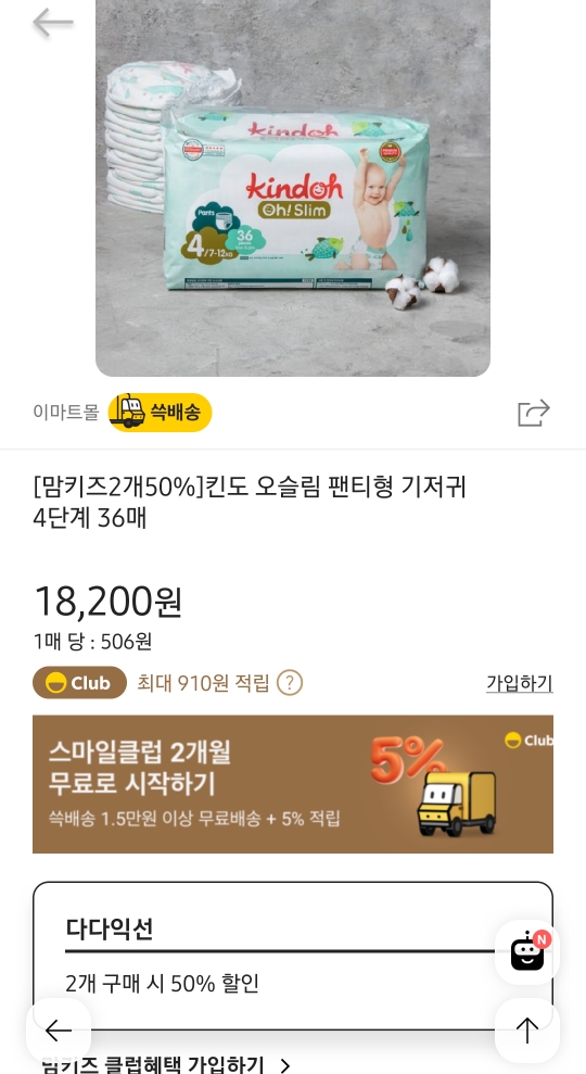 특히나 제가 사용하는 킨도 기저귀는 이마트에서 다양한 할인 행사를 수시로 해 원하는 양만큼의 기저귀를 좋은 가격에 구입할 수 있어요.
