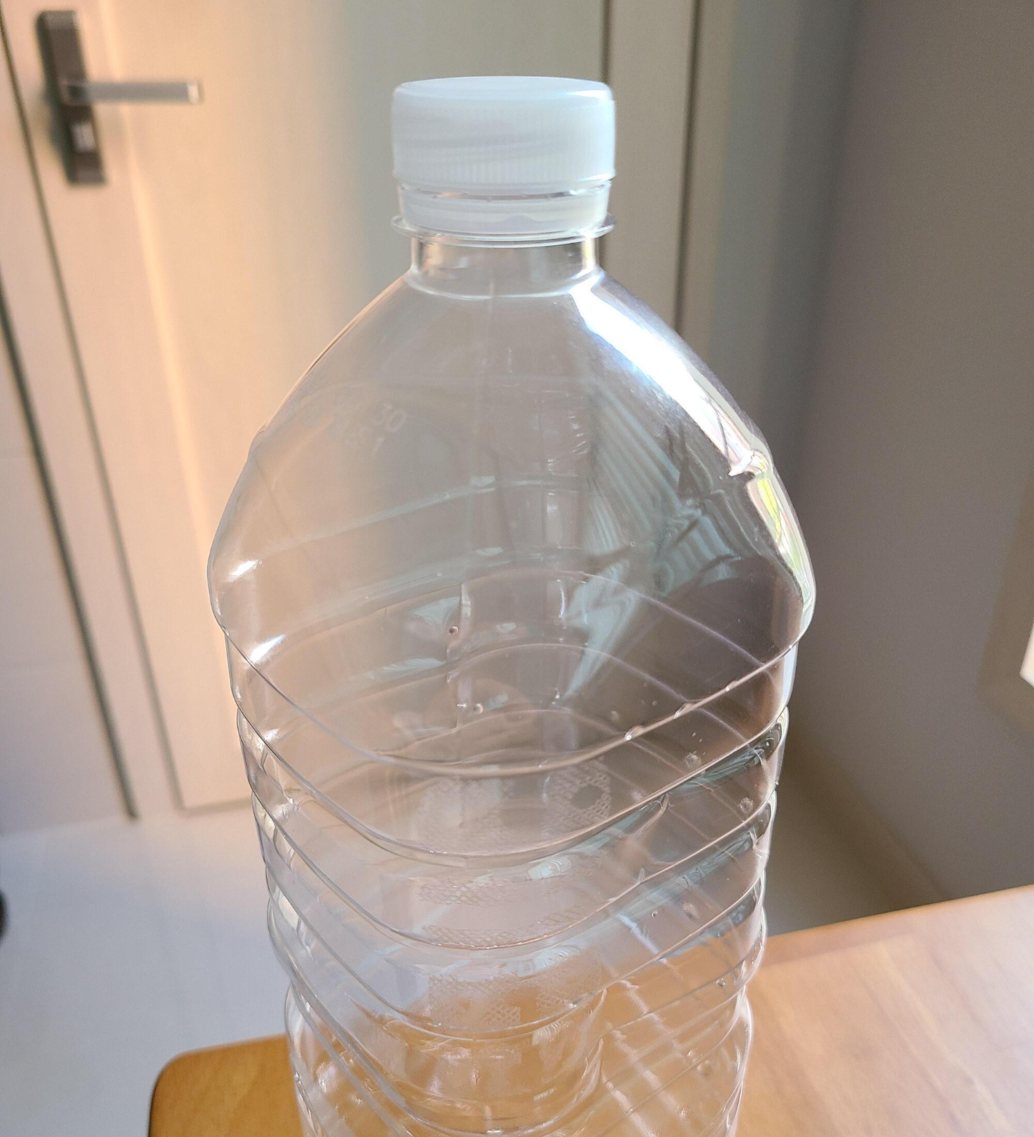 아무 생각 없이 물을 마시고 한 통을 다 비운 뒤 두 번째 병을 꺼내다 생수병에 라벨이 없다는 것을 발견했어요.
