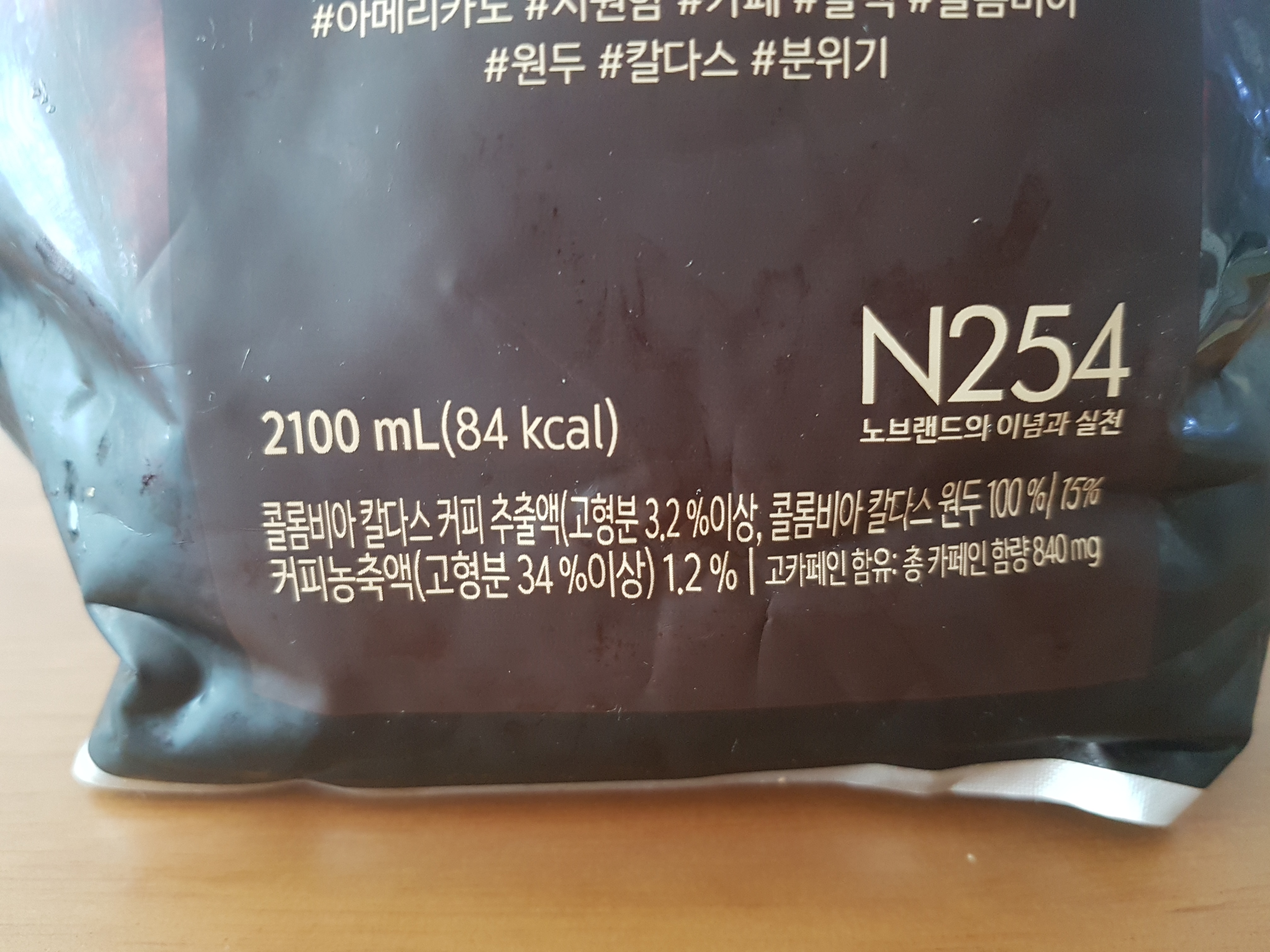 기본 베이스로 이 커피를 활용해 아이스 아메리카노나 따뜻한 아메리카노 혹은 우유를 섞어 라테를 만들어 마실 수 있어요. 콜롬비아산 원두 추출액과 브라질산 원두 농축액, 산도조절제, 합성향료가 들어가 100% 원두로 추출된 커피는 아니라는 점, 또 진하지 않아 혹 깊고 풍부한 맛을 원하는 분들께는 다소 아쉬움이 남는 커피일 수 있지만