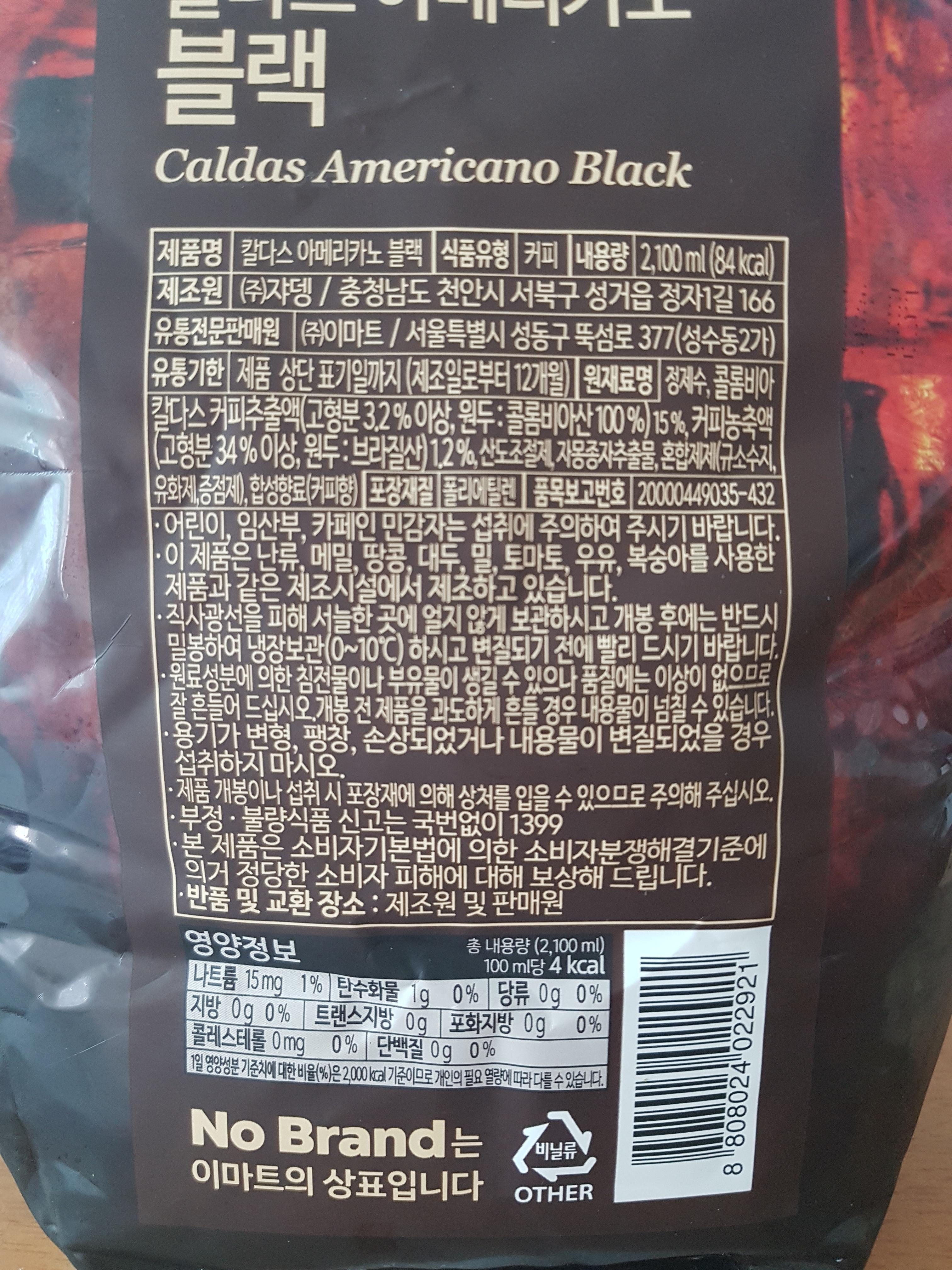 오늘은 그중 액상형의 노브랜드 칼다스 커피를 추천드리려고 해요.