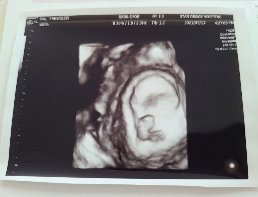 아기의 크기는 1.67CM. 이날 아기의 얼굴과 몸도 초음파로 볼 수 있었어요.