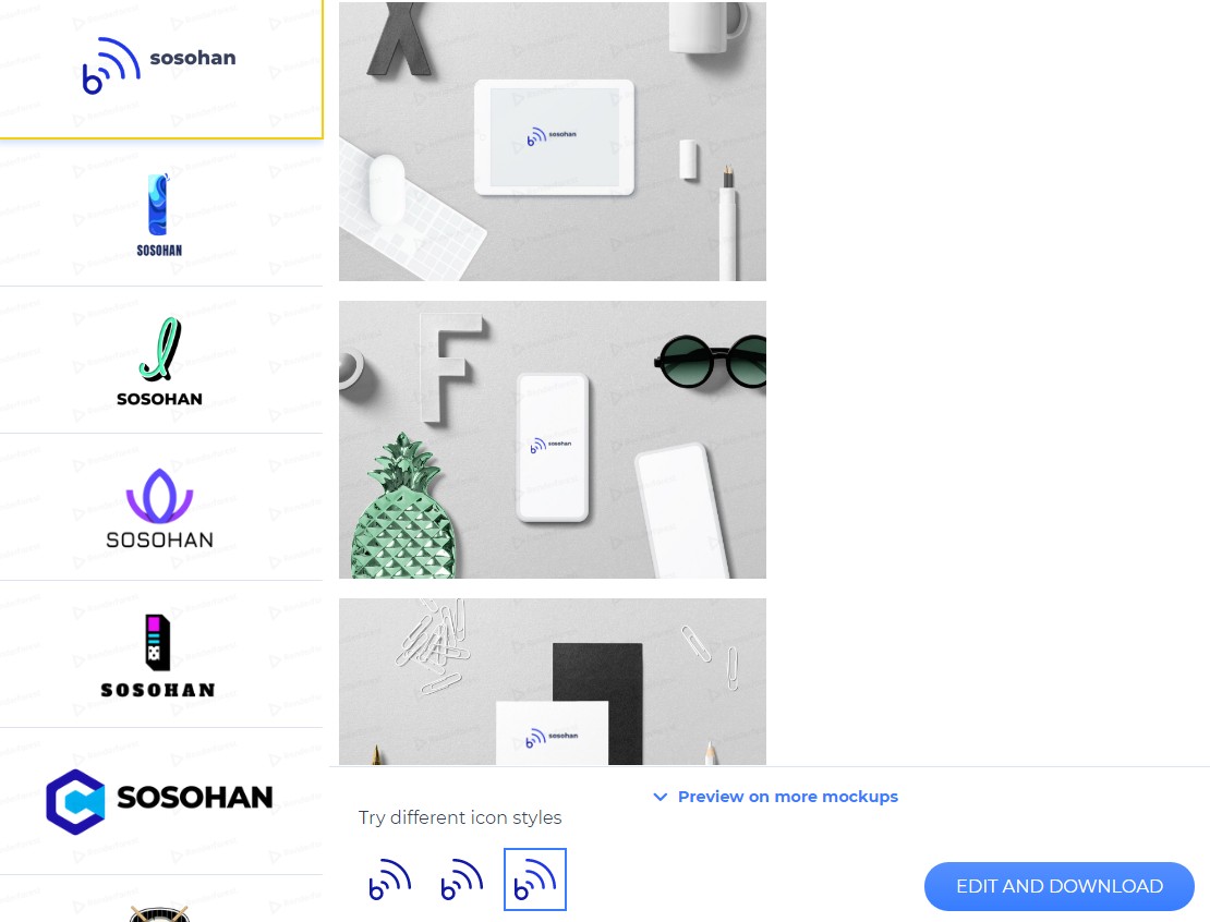 그럼 내 로고가 제품에 쓰였을 때 어떻게 보이는지 그 이미지를 보여주는데 이건 어디까지나 단순 예시니