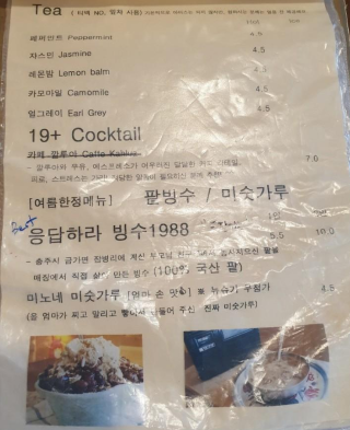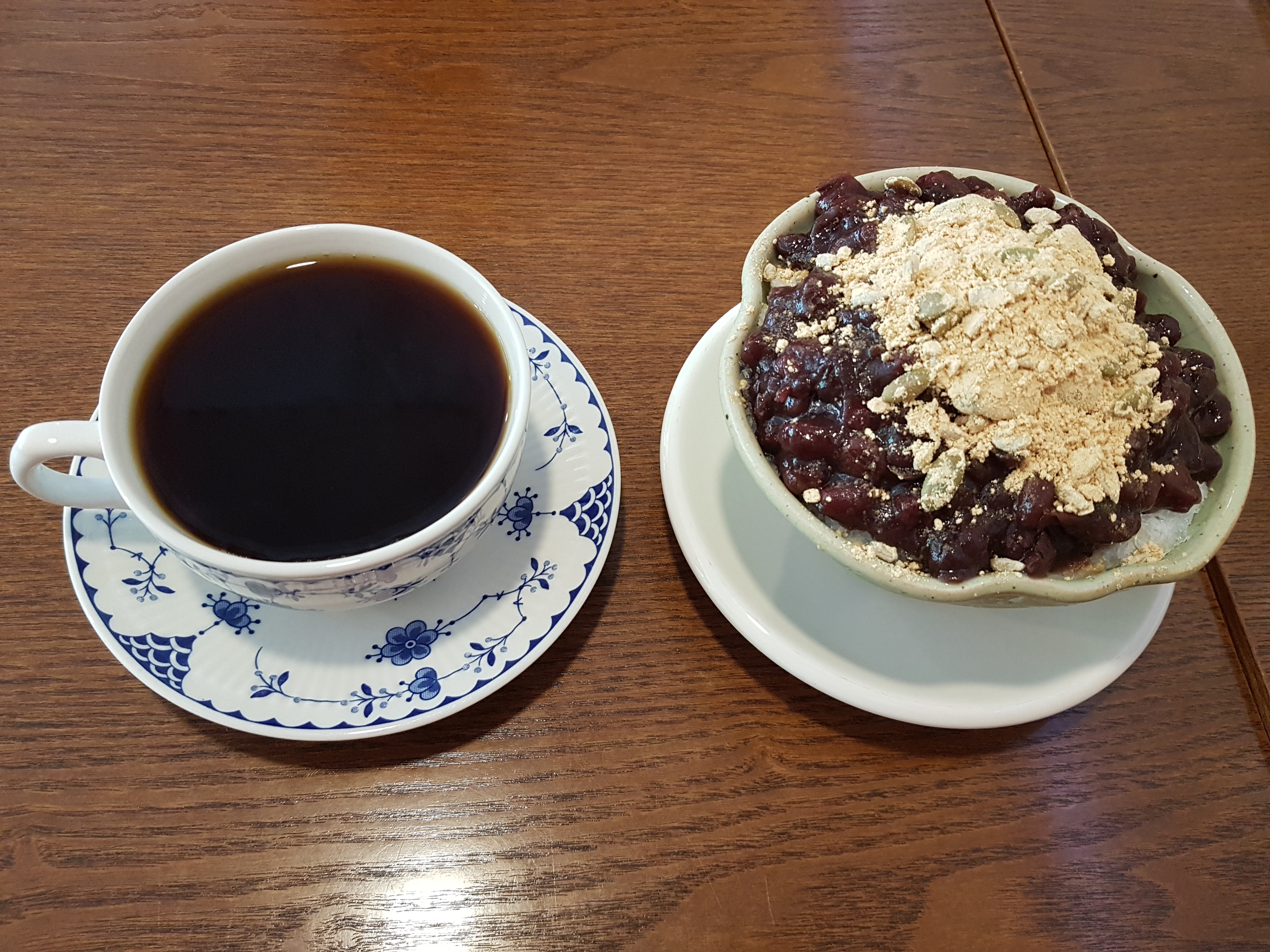전 따뜻한 커피와 이곳의 인기 메뉴라는 응답하라 빙수 1988을 주문했어요.