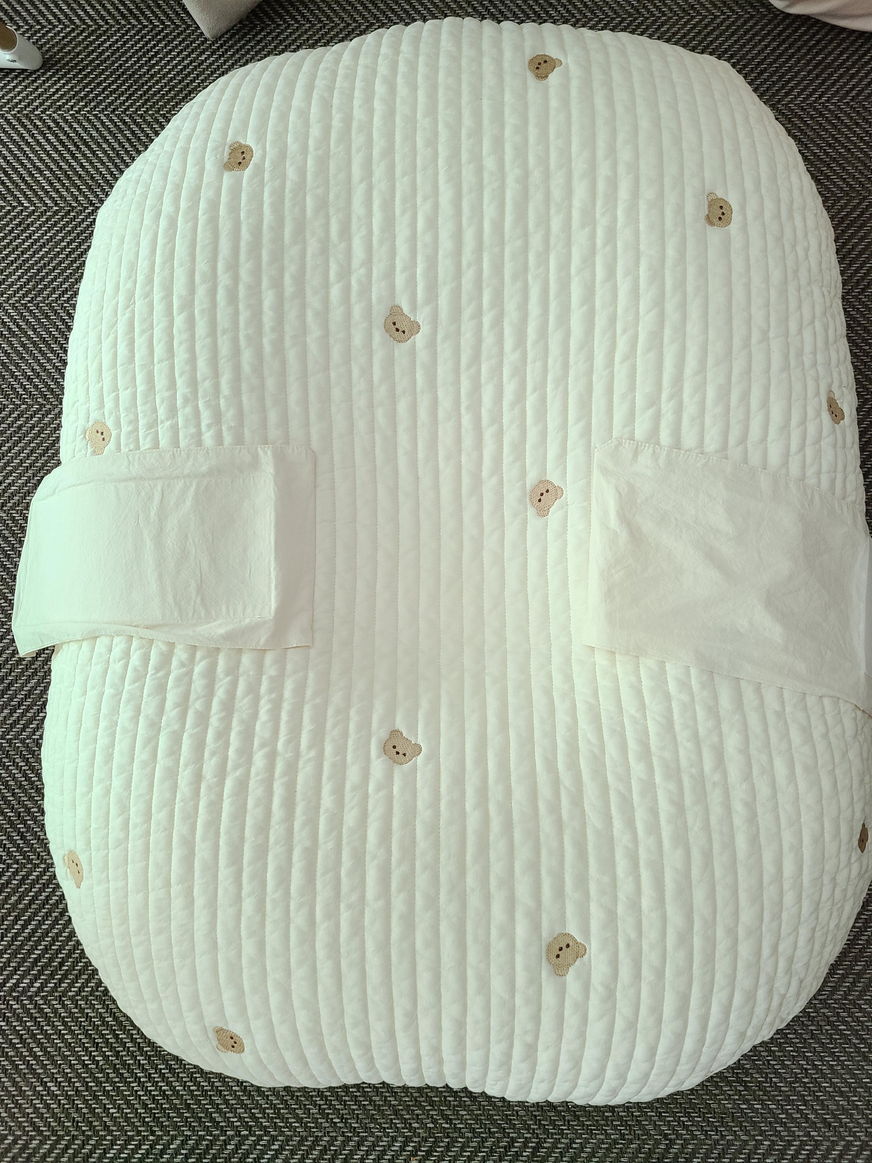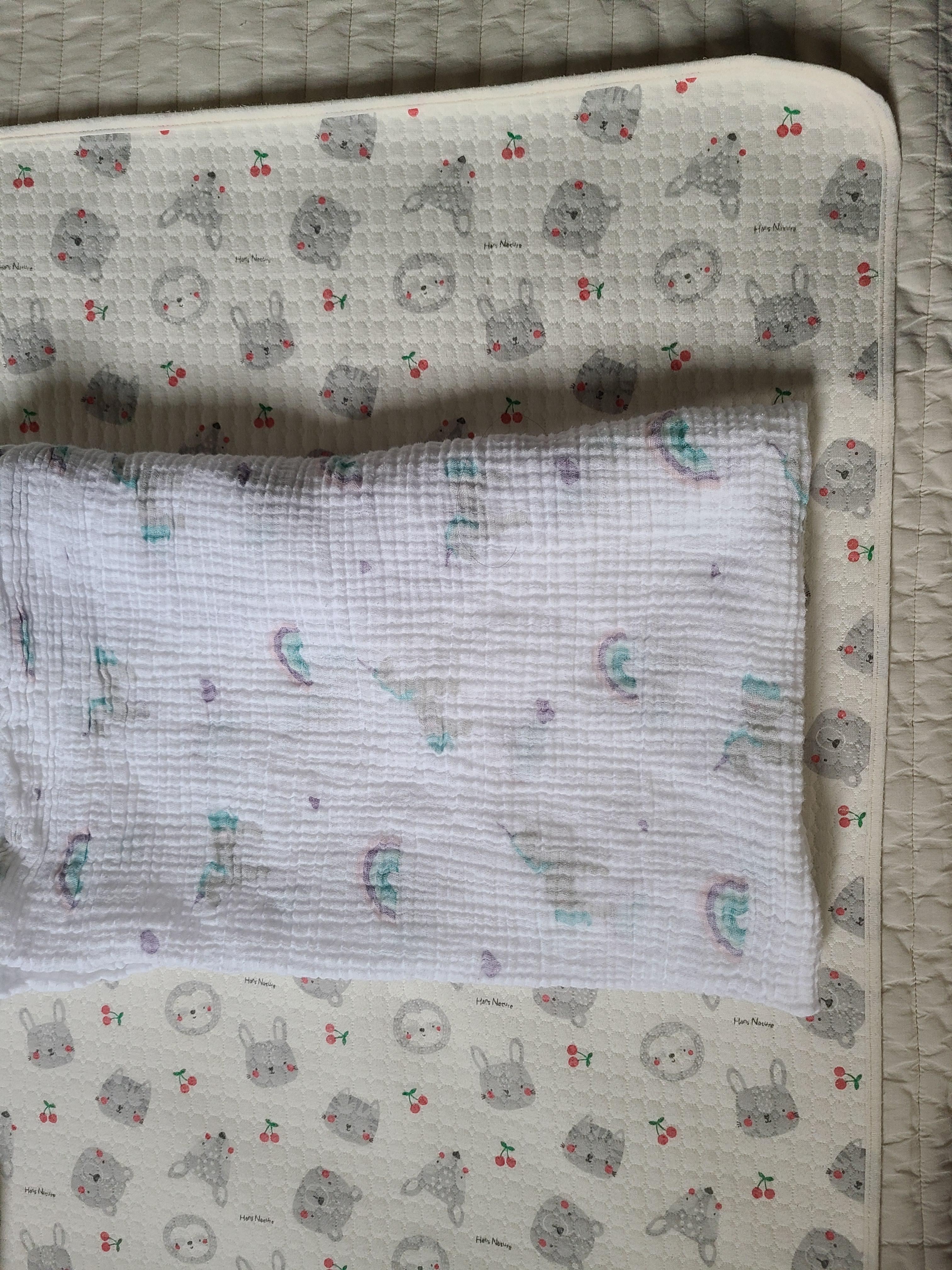 아기를 키워보니 기저귀를 잘 채워도 잘 때 그리고 누워있을 때 쉬나 응가가 샐 수 있어 방수 패드는 필수인 것 같아요. 밤에 잠을 잘 때 꼭 방수 패드 위에서 재우는데 두 장 정도 있으면 잘 사용할 수 있는 것 같아요.