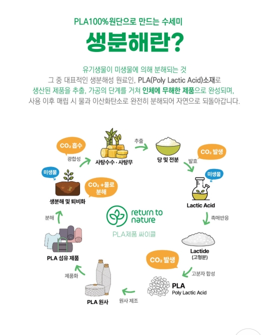 이 소잰 물과 이산화탄소로 완전히 분해되는 성분이기 때문에 미세 플라스틱에 대한 걱정을 하지 않아도 된다고 해요.