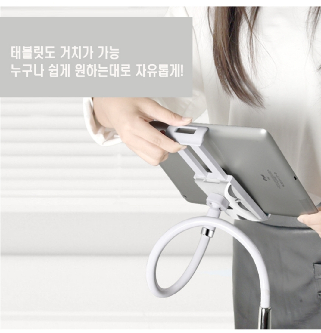 우선 상품들을 쭉 검색하고 세 가지 정도를 추려 그 중 가장 후기도 좋고 단단해보이는 DGG 멀티 태블릿 자바라 거치대 바로 이 제품을 선택했는데요. 엄청 고정력이 좋은 건 아니지만 누워서 손으로 잡고 있지 않아도 되고 검색을 하거나 특히나 동영상을 볼 때 가장 많이 사용하게되는 것 같아요. 이건 2세대 자바라 거치대인데 1세대 제품에 비교해 기존의 스마트폰 뿐 만 아니라 12인치 이상의 태블릿도 거치 가능하도록 만들어진 제품이라고 해요.