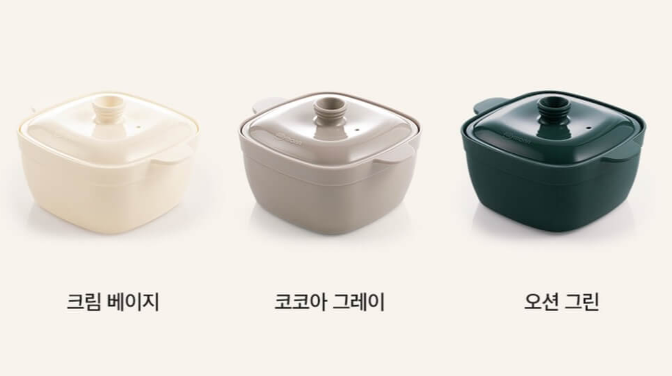 실리만 찜기의 용기 색상은 오션 그린, 코코아 그레이, 크림 베이지 세 가지가 있는데 전 코코아 그레이 색상으로 구입했어요.