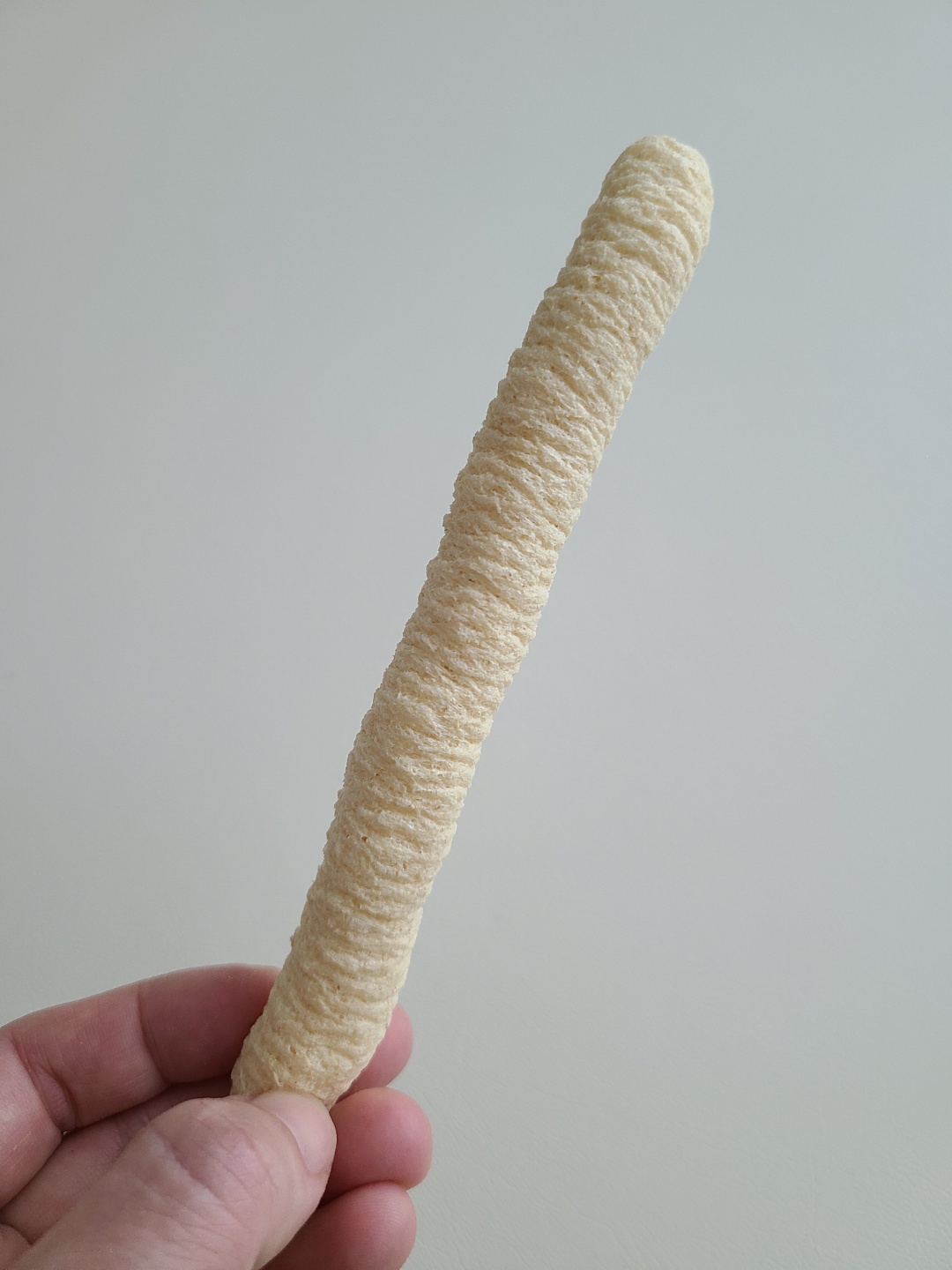 처음엔 조금 거친 것 같아 이 과자 대신 일반적인 떡 뻥을 주었는데 자꾸 덩어리 져 목에 걸리는 것 같아 길게 잡고 먹을 수 있는 이 제품을 선택해 주고 있어요. 다행히 처음보단 훨씬 잘 잡고 잘 먹어주네요.