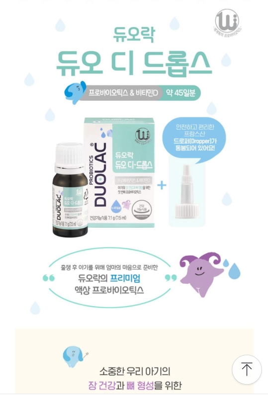 그래서 미리 구비해둔 듀오락 듀오 디 드롭스를 태어나서 6일째되는 날부터 조리원여서 먹이기 시작했어요. 나름 여기저기 검색을 해보고 제가 선택한 첫 유산균 & 비타민 D였는데요.