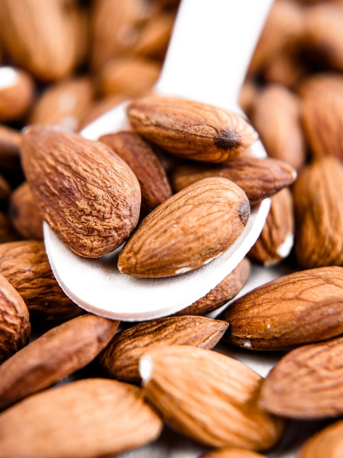 반대로 아몬드는 칼로리가 높아 (아몬드의 칼로리는 100g 기준 598㎉ 정도 되는 한 알당 약 7㎉) 살찌는 것이 두려워 아몬드 먹기를 꺼려하는 사람들도 많은데요. 하루 두 줌 정도로 그 양을 제한해 먹는다면 아몬드에 든 식물성 단백질과 식이섬유가 포만감을 느낄 수 있게 도움을 준다고 하니 너무 걱정하지 않고 먹어도 될 것 같아요.