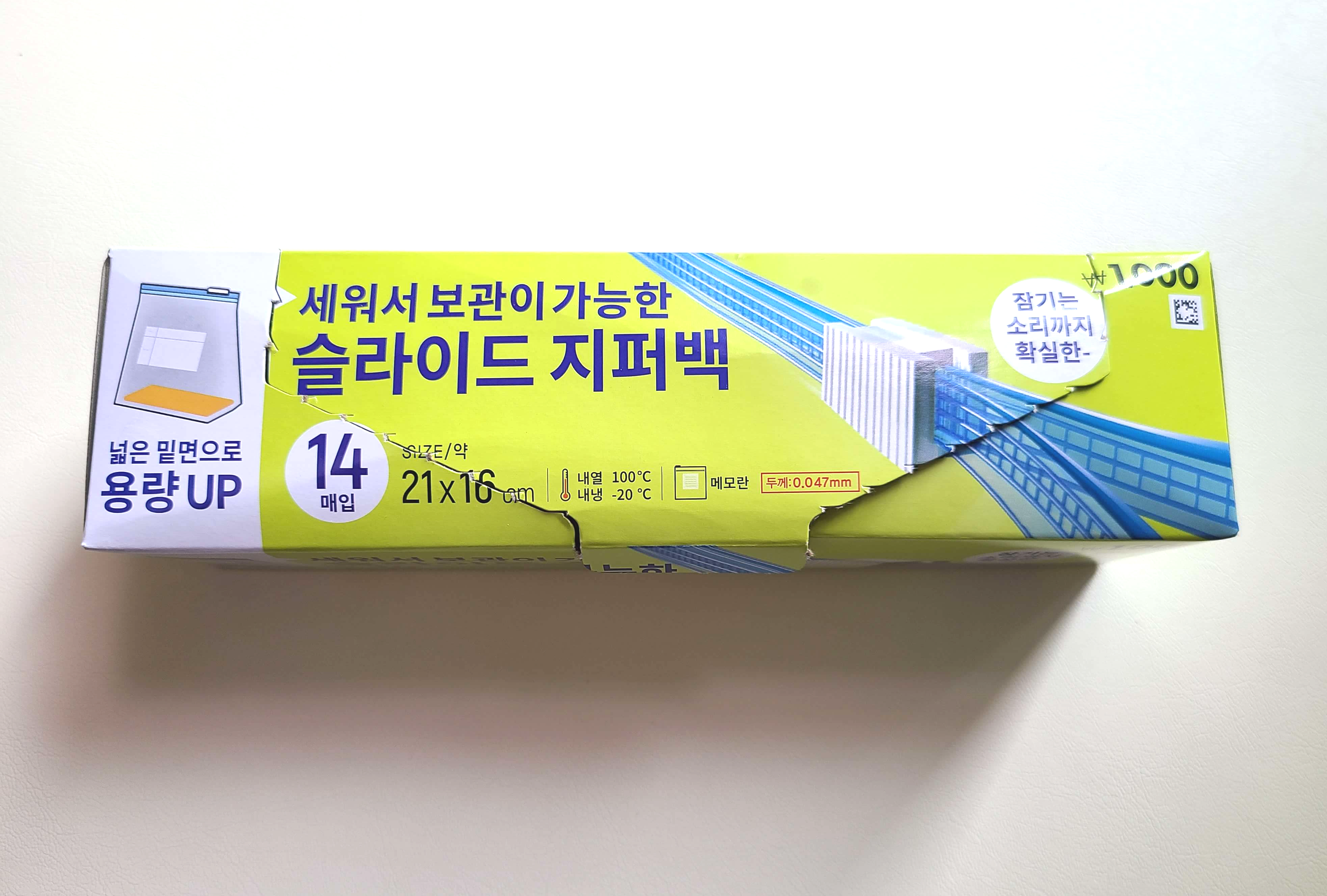 이 비닐은 우연히 구매해 사용하게 되었는데 너무도 편리하고 밀폐력도 좋아 아기가 태어나고 나서도 아기 용품을 넣거나 간식을 넣을 때도 사용하고 있어요. 무엇보다 지퍼백을 열고 닫기 쉽게 슬라이드 형태로 되어 있어 바쁘게 물건을 담을 때도 꾹꾹 눌러줘야 하는 불편함이 없어 좋아요.