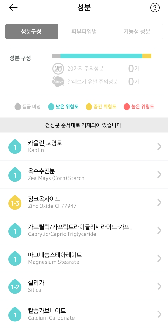 고령토와 옥수수 전분이 주가 되는 성분이라 좀 더 안심하고 사용할 수 있는 것 같아요.