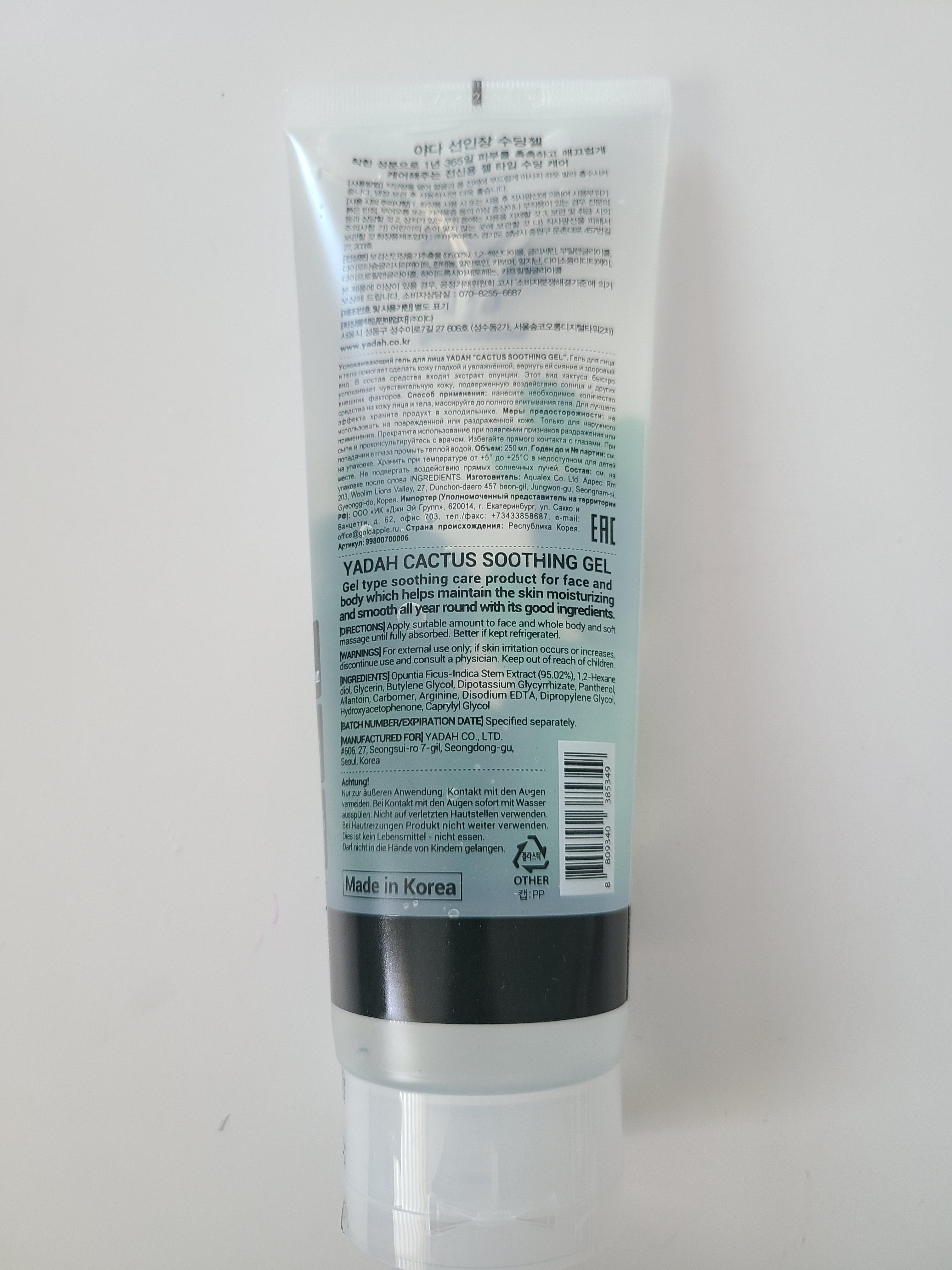 그래서 여름에 가볍게 바르기 좋을 만한 제품을 찾다 선택한 제품이 바로 이 야다 선인장 수딩젤입니다.