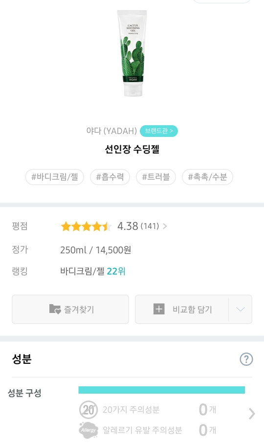 올리브영이나 다른 여러 온라인몰에서도 구입 가능하다고 하니 여름에 수분감 충만한 착한 스킨케어 제품을 찾으셨다면 이 야다 선인장 수딩젤 강력추천드립니다.