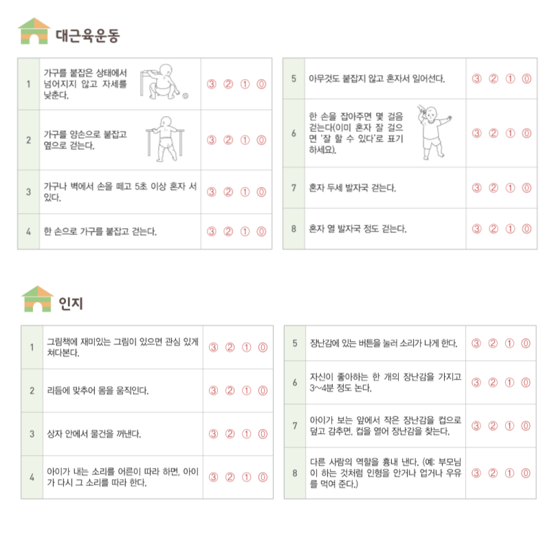 영유아검진을 항상 받는 것이 아니니 자꾸 어떤 것을 작성해야 하는지 잊어버리게 되는데요, 4개월 이후부터는 건강검진 문진표와 발달 선별 검사지를 함께 작성해야 하며 생후 18개월 이후부터는 구강 검진 문진표도 작성해야 합니다.