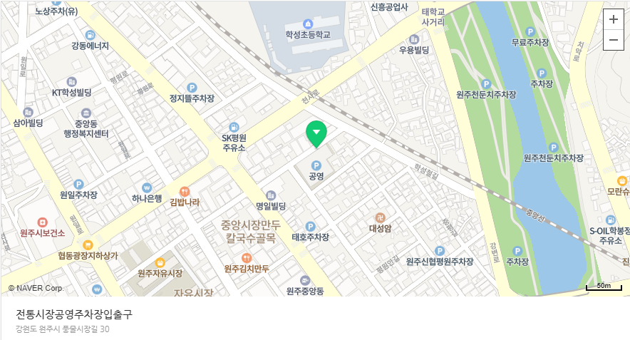 참고로 저흰 원주 전통시장 공영주차장에 차를 주차하고 갔는데 주차장에서 큰길가로 나와서 길을 건너면 시장 골목으로 헤매지 않고 쉽게 찾아가실 수 있답니다.