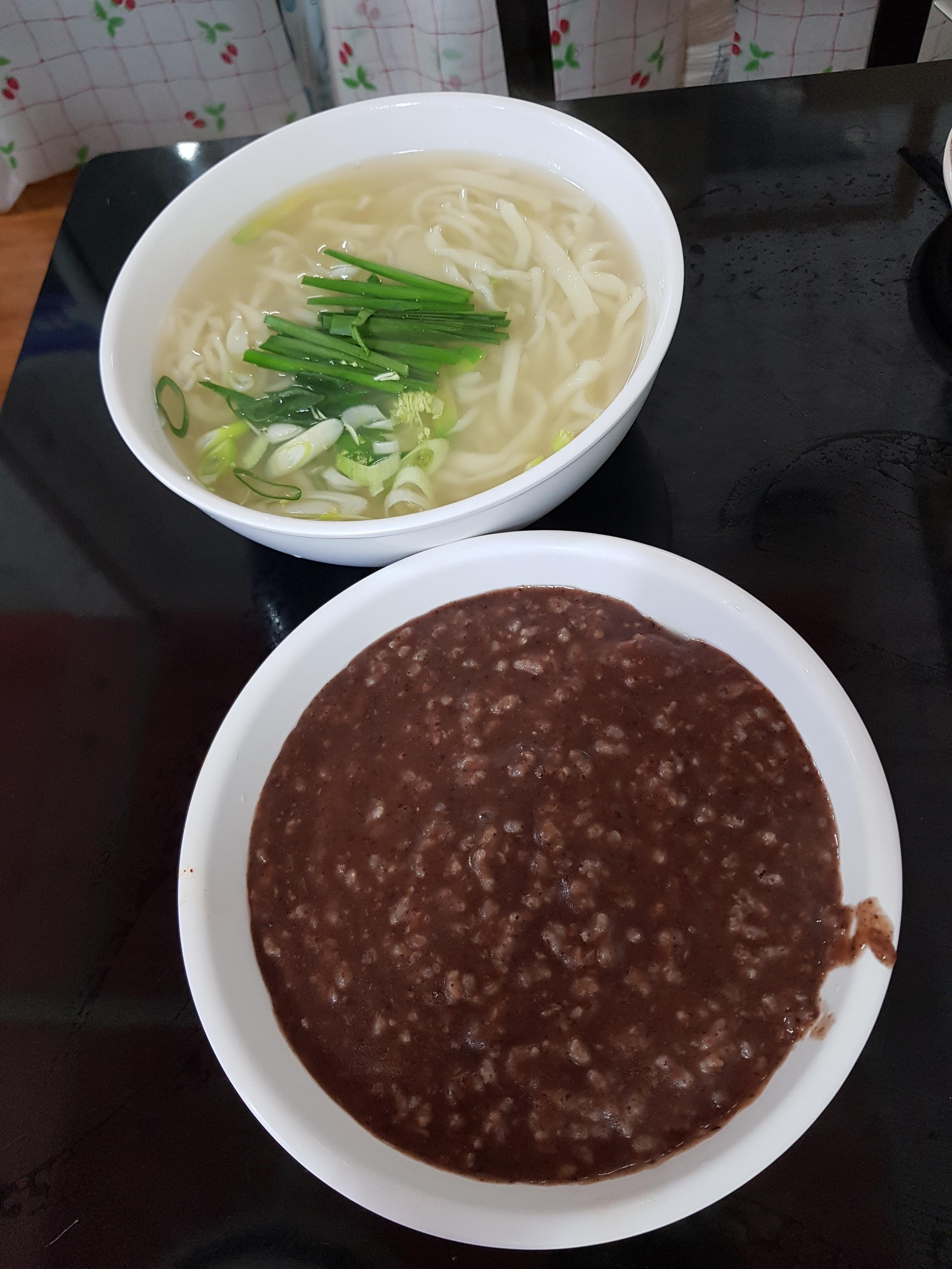 처음 팥죽을 보고 밥알만 있는 것 같아 '어~~'했는데(전 새알파라서) 안에 새알도 같이 들어있는 팥죽이더라구요. 진한 팥죽의 맛도 좋았고 칼국수 면발도 쫄깃하고 국물도 깔끔했어요. 전체적으로 집에서 엄마가 해주시던 그런 맛~이라면 느낌이 오실까요?