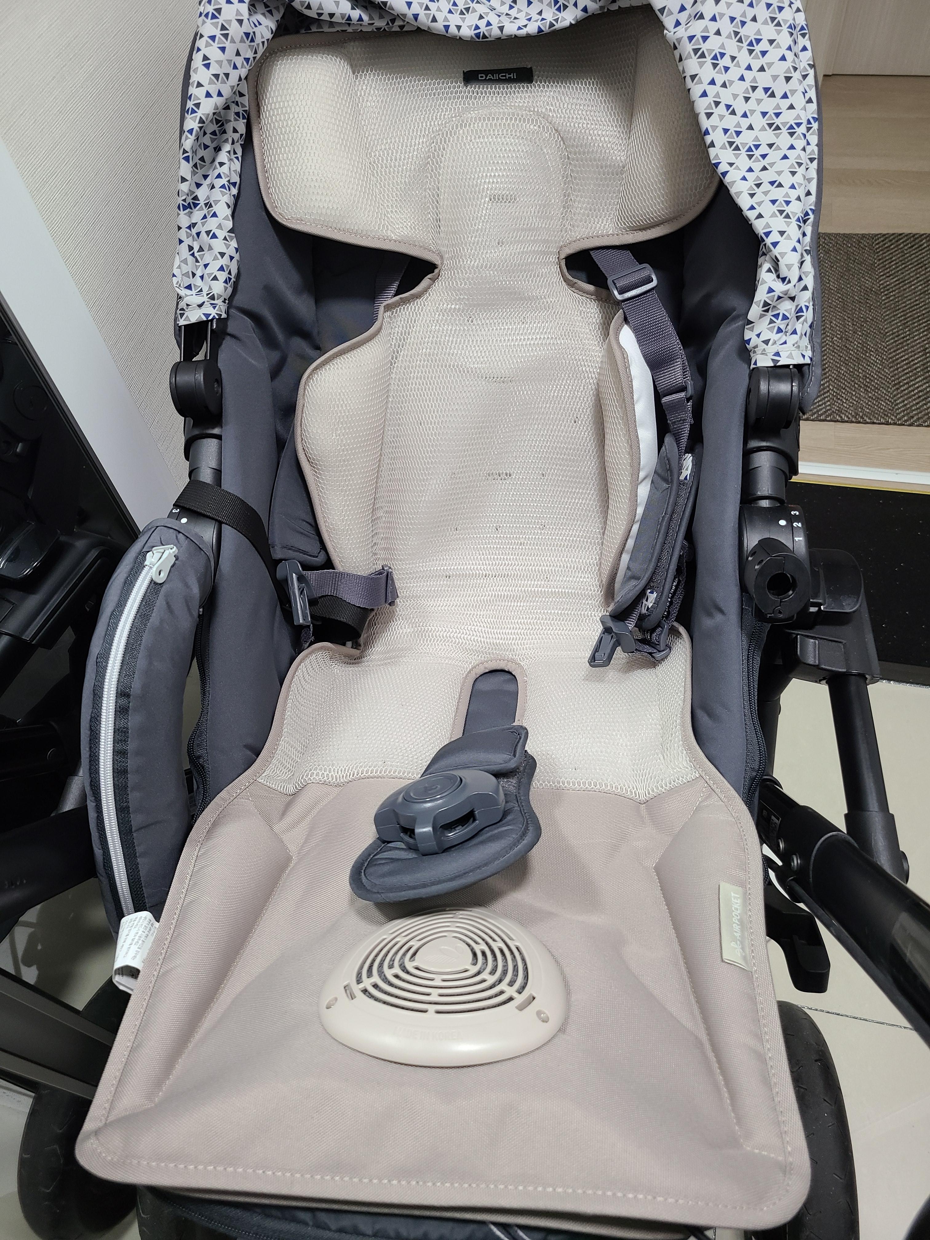 처음엔 유모차 선풍기를 살까 했는데 열 많은 저희 딸 등에 매번 땀이 차는 것 같아 통풍시트가 더 낫겠다 싶었어요.