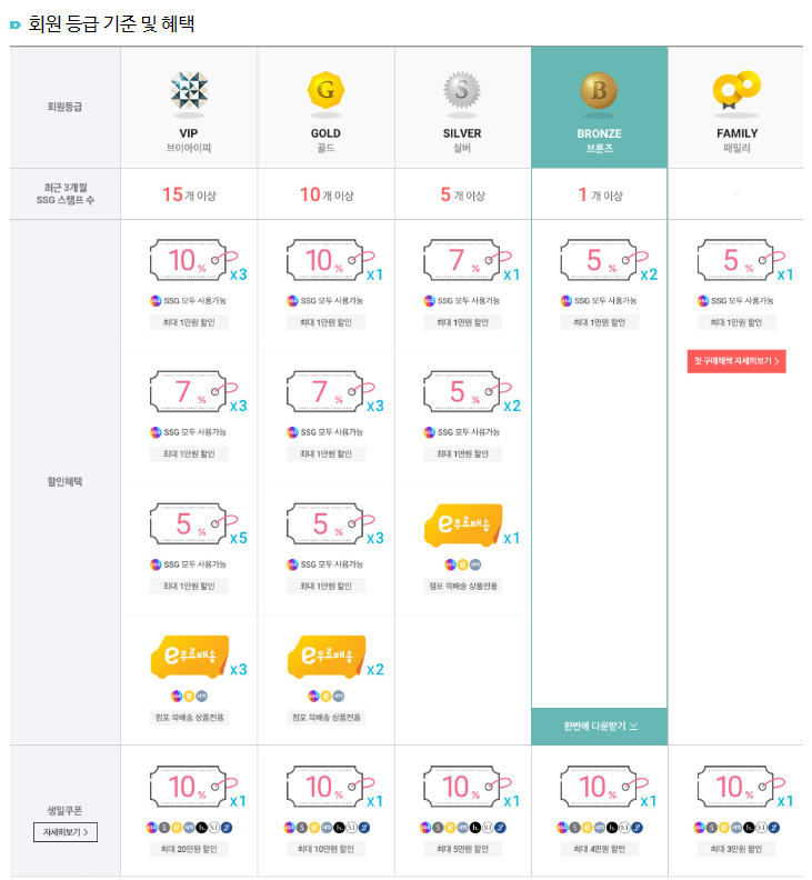 이마트몰 홈페이지서 매달 회원 등급별 할인쿠폰, 기념일 할인 쿠폰 등을 발급받을 수 있으니' MY SSG'에서 확인해 보시고 꼭 다운로드하여 사용하세요.