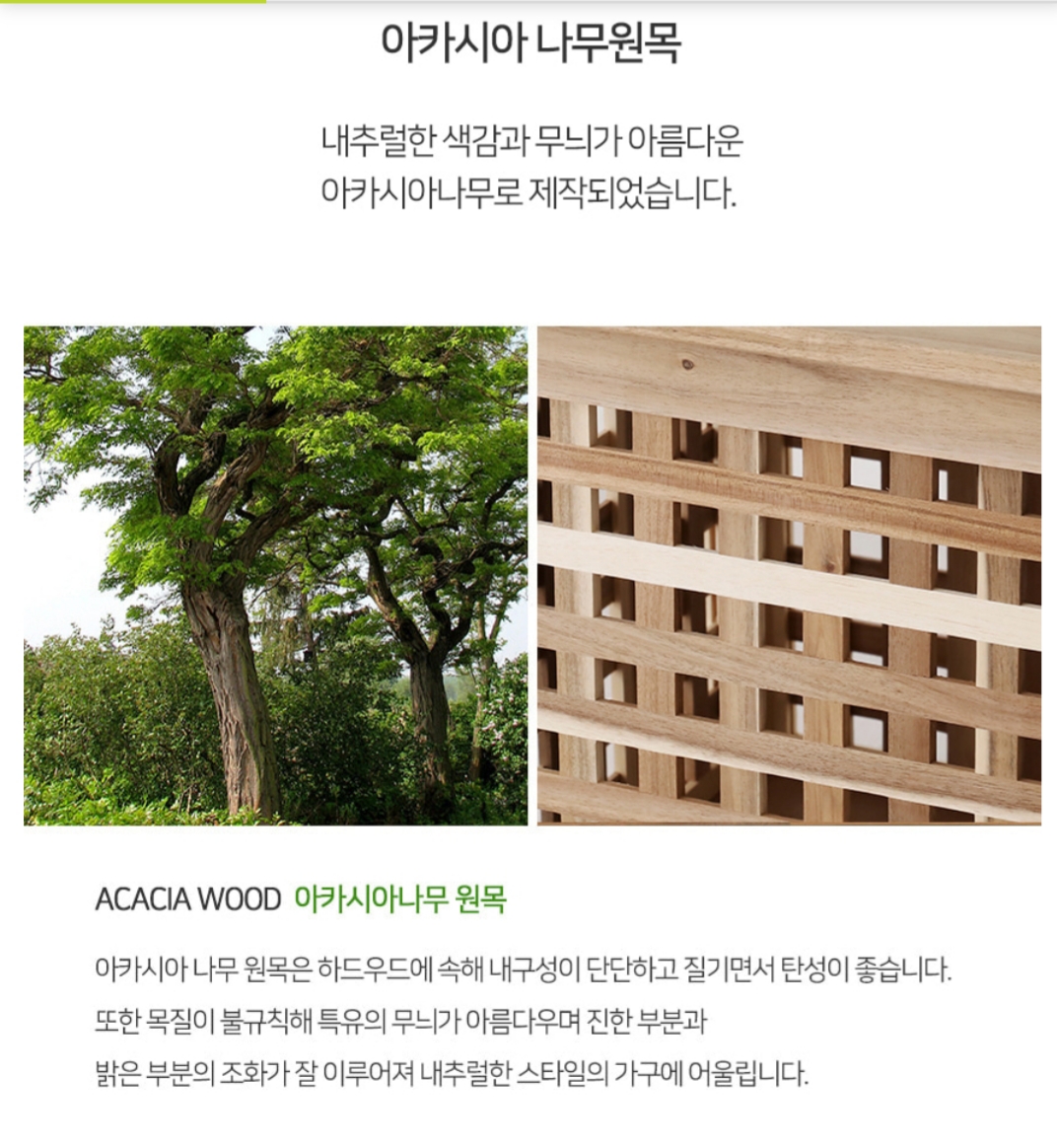 아카시아 나무를 사용했고 내부 밑판은 mdf입니다.