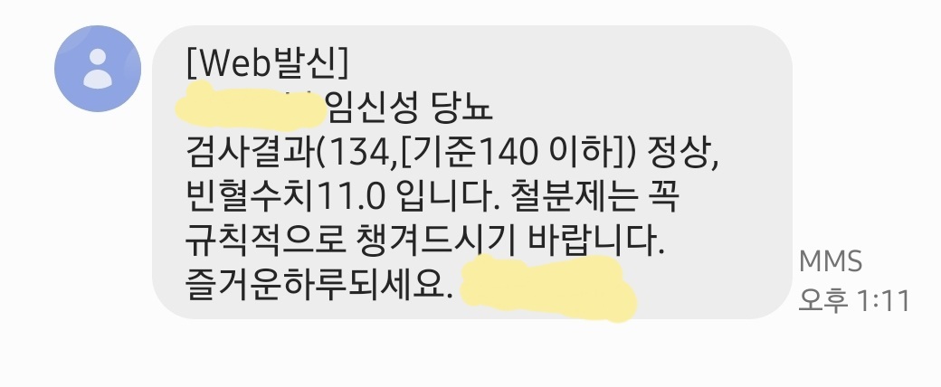 이렇게 정상으로 나왔어요. 물론 병원마다 기준이 약간 달라 130만 넘어도 재검의 대상이 된다는 글을 보기도 했지만 이곳저곳을 찾아보니 보통 기준을 140으로 보고 재검의 여부를 결정하는 곳이 많다고 하더라구요.