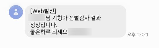 2차 검사 후 일주일 정도 지나 받은 메세지입니다.