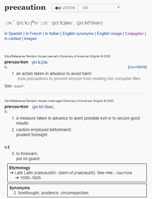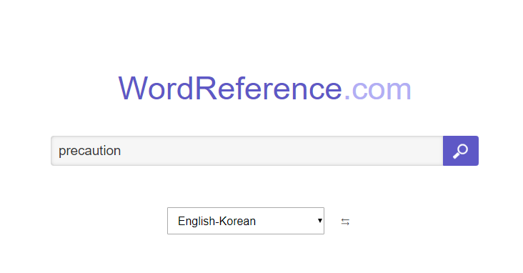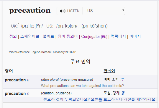 가령 precaution이란 단어의 의미가 궁금하다면 검색창에 'precation' 치고