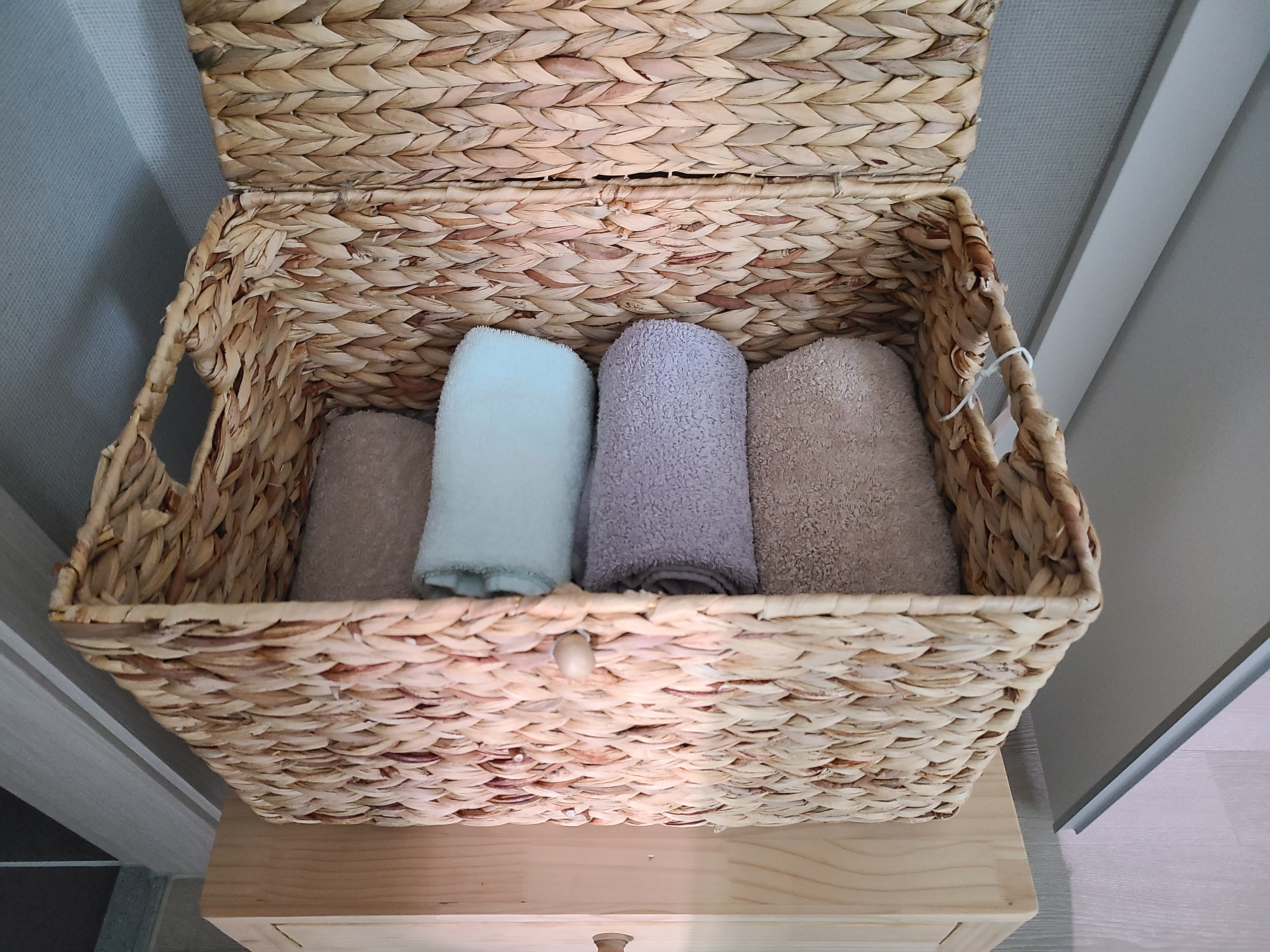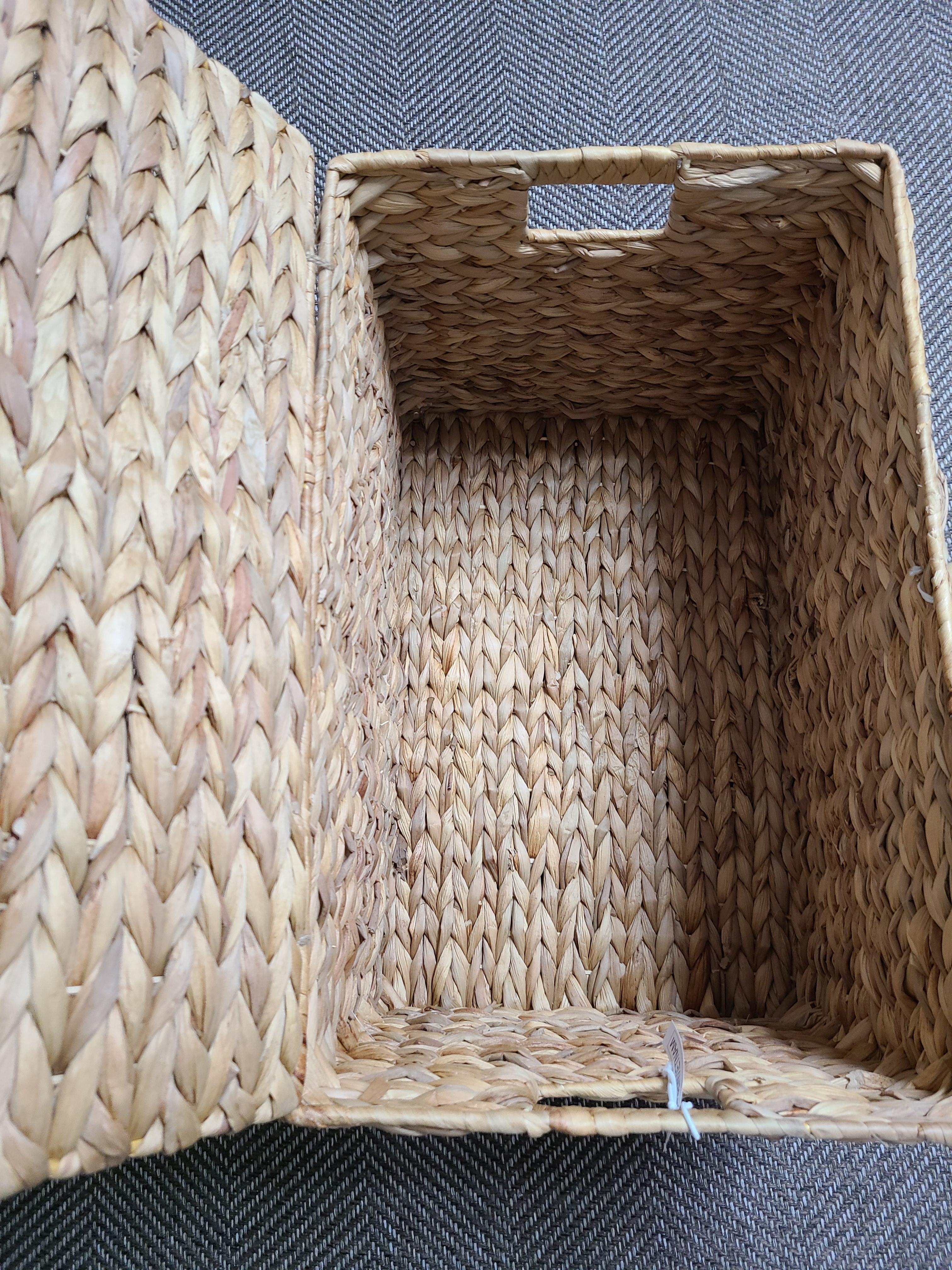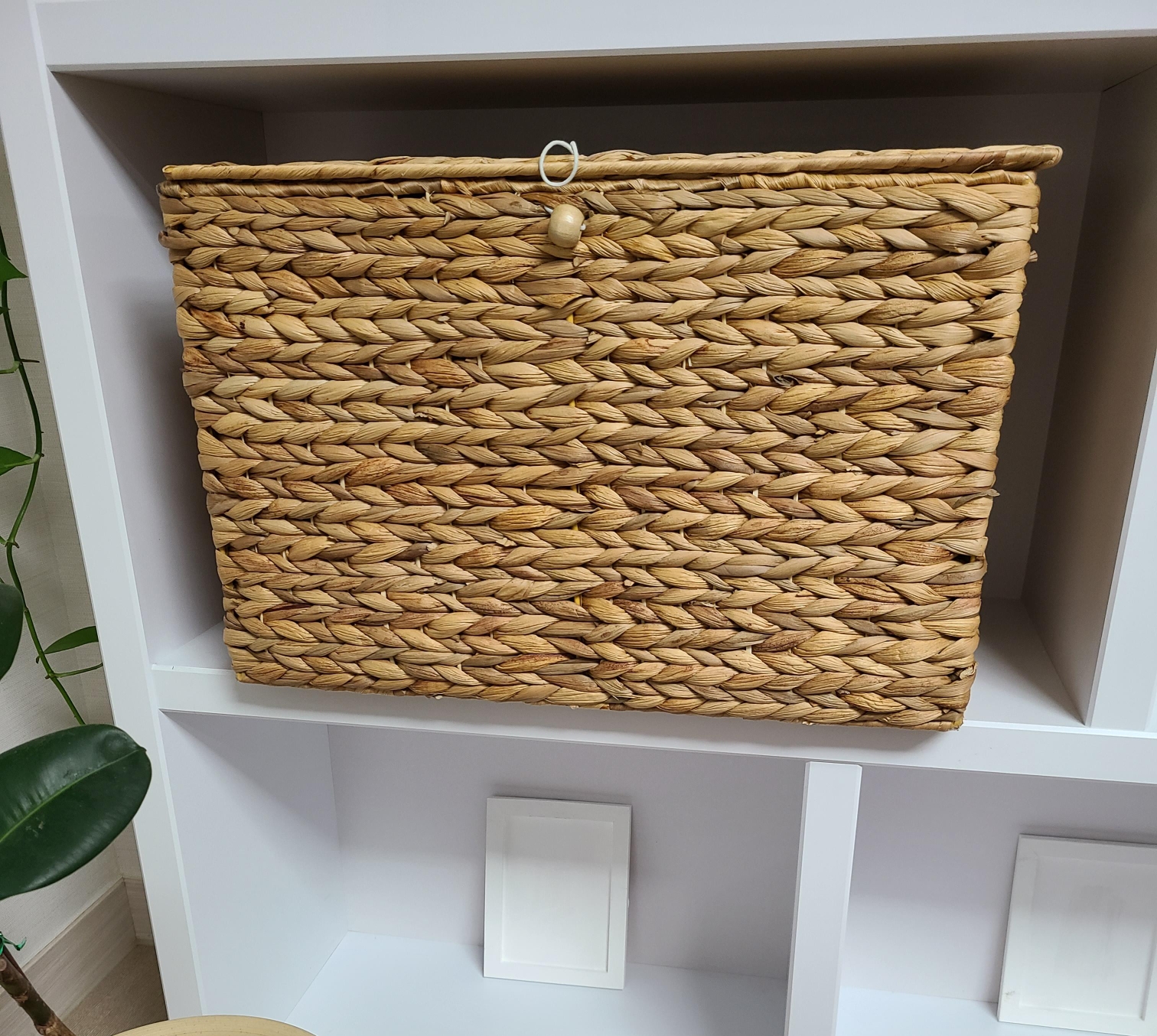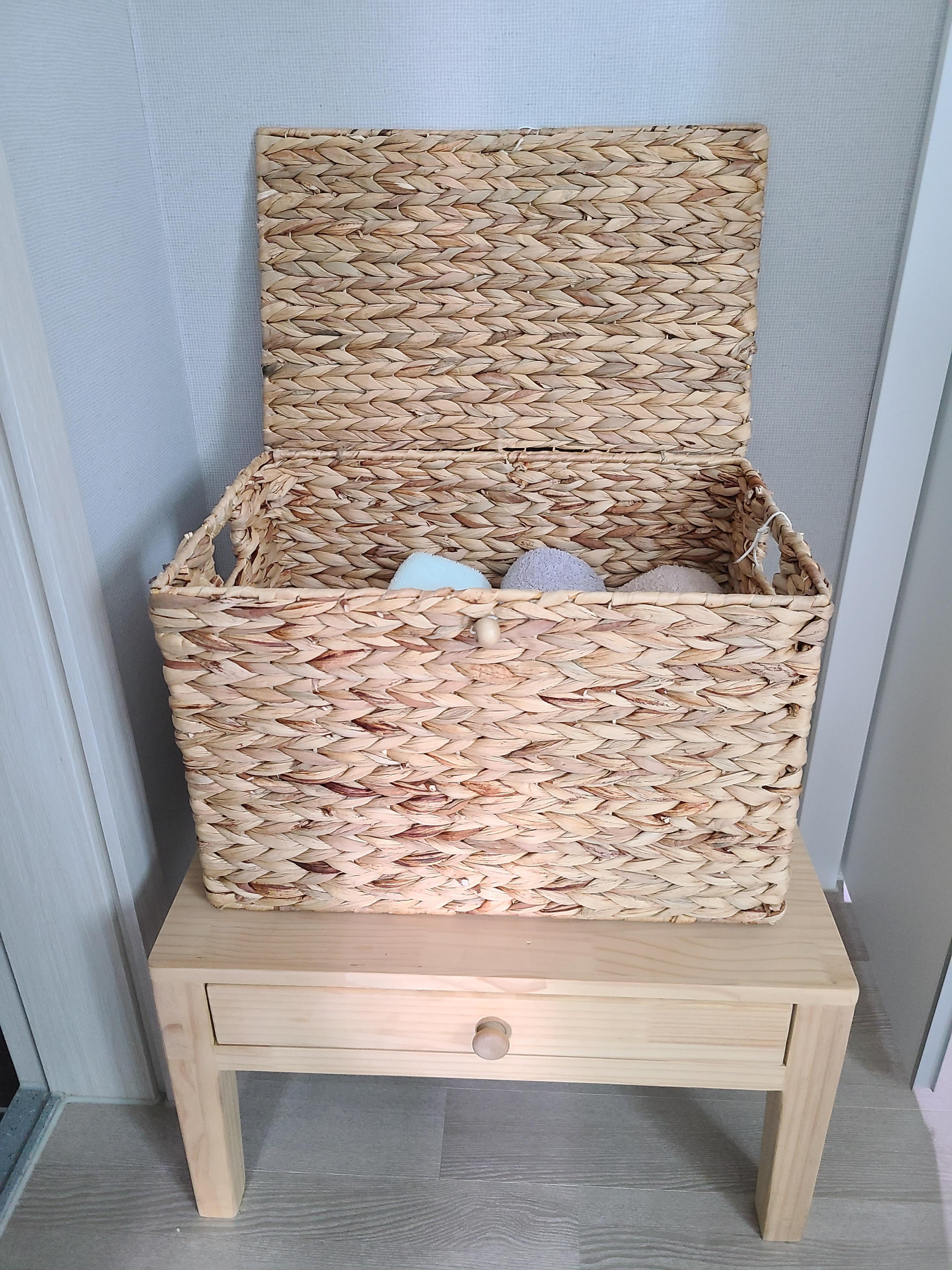 거실에 원래 가지고 있던 책장을 가지고 나오면서 책장 같은 느낌을 줄이고 깔끔한 느낌을 줄 수 있는 수납 상자를 찾고 있었어요. 거실 뿐 아니라 수건 보관함으로 사용하고도 싶어 라탄함을 계속 찾았는데 너무 사이즈가 작아 수납력이 떨어지거나 뚜껑이 없는 제품들이 많더라구요.