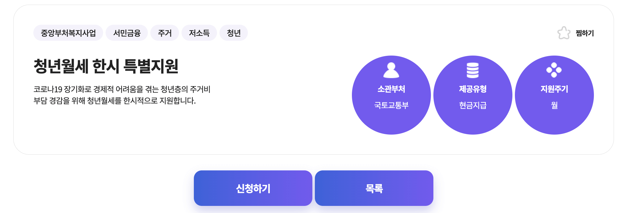 임차보증금이나 관리비는 지원되지 않으며 임대료에 대해셔만 12개월 분을 일시금이 아닌 매월 분할로 지급해 줍니다. 단 지자체가 자체 시행하는 청년월세 지원사업의 지원을 받았거나 현재 받고 있다면 신청이 불가능합니다.