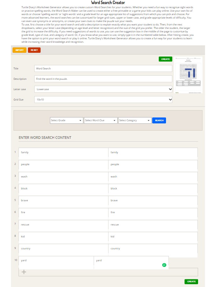 이 사이트의 장점은 이미 만들어진 워크시트가 아니라 필요에 따라 내가 원하는 단어를 넣어 직접 만들어 볼 수 있다는 점이에요.