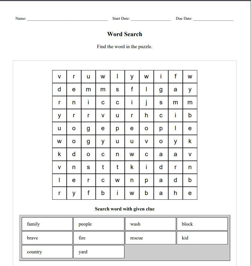 다음으로 아이들이 단어 자체에 좀 더 집중해 철자를 익히는데 도움을 주는 Word Search.