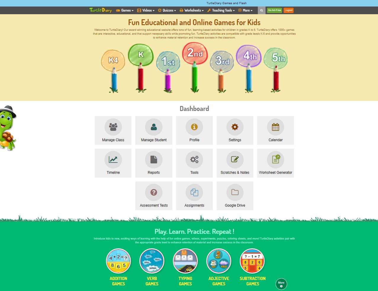Fun Educational and Online Games for Kids Welcome to TurtleDiary! Our award winning educational website offers tons of fun, learning-based activities for children in grades K to 5. TurtleDiary offers 1000+ games that are interactive, educational, and that