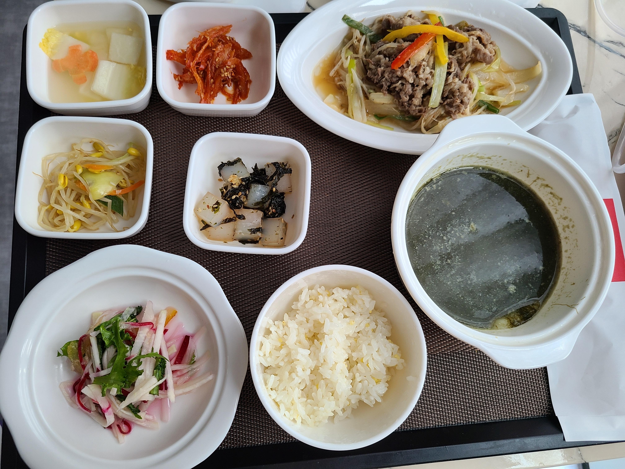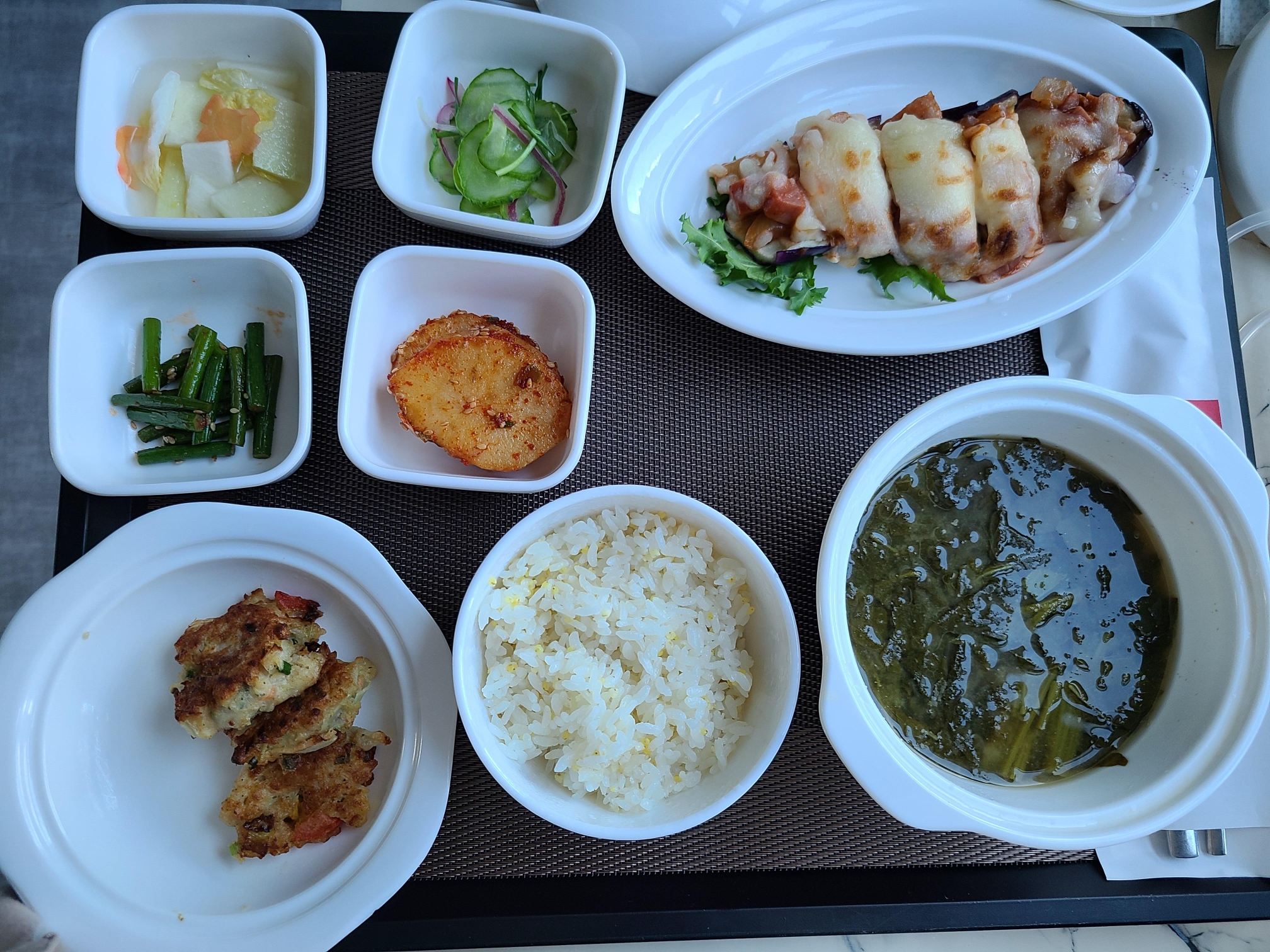 조리원에서 나오는 식사에 대해서도 궁금해하실 텐데요. 기본적으로 간이 세지 않았고 맵지 않은 음식으로 나왔어요. 미역국이 주가 되긴 했지만 돈가스나 비빔밥 등도 나와 물리지 않게 식사할 수 있었고 점심과 저녁 식사 후에 나오는 간식도 맛있게 먹었습니다.