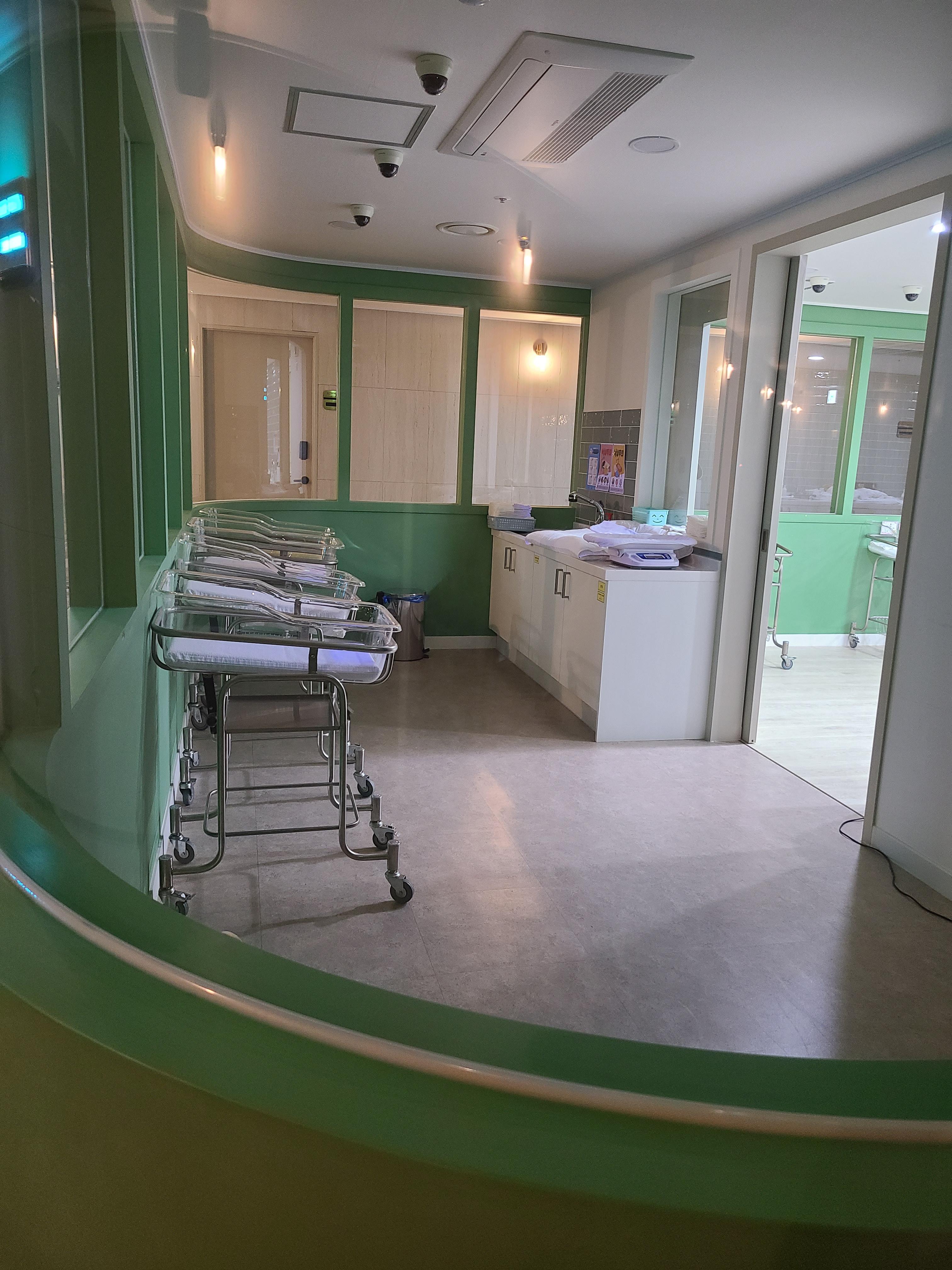 무엇보다 중요한 신생아실이에요. 처음 들어가면 로타바이러스 감염여부 등을 검사한 뒤 다른 아이들과 분리된 이 공간에서 하루정도 머무르게 됩니다.