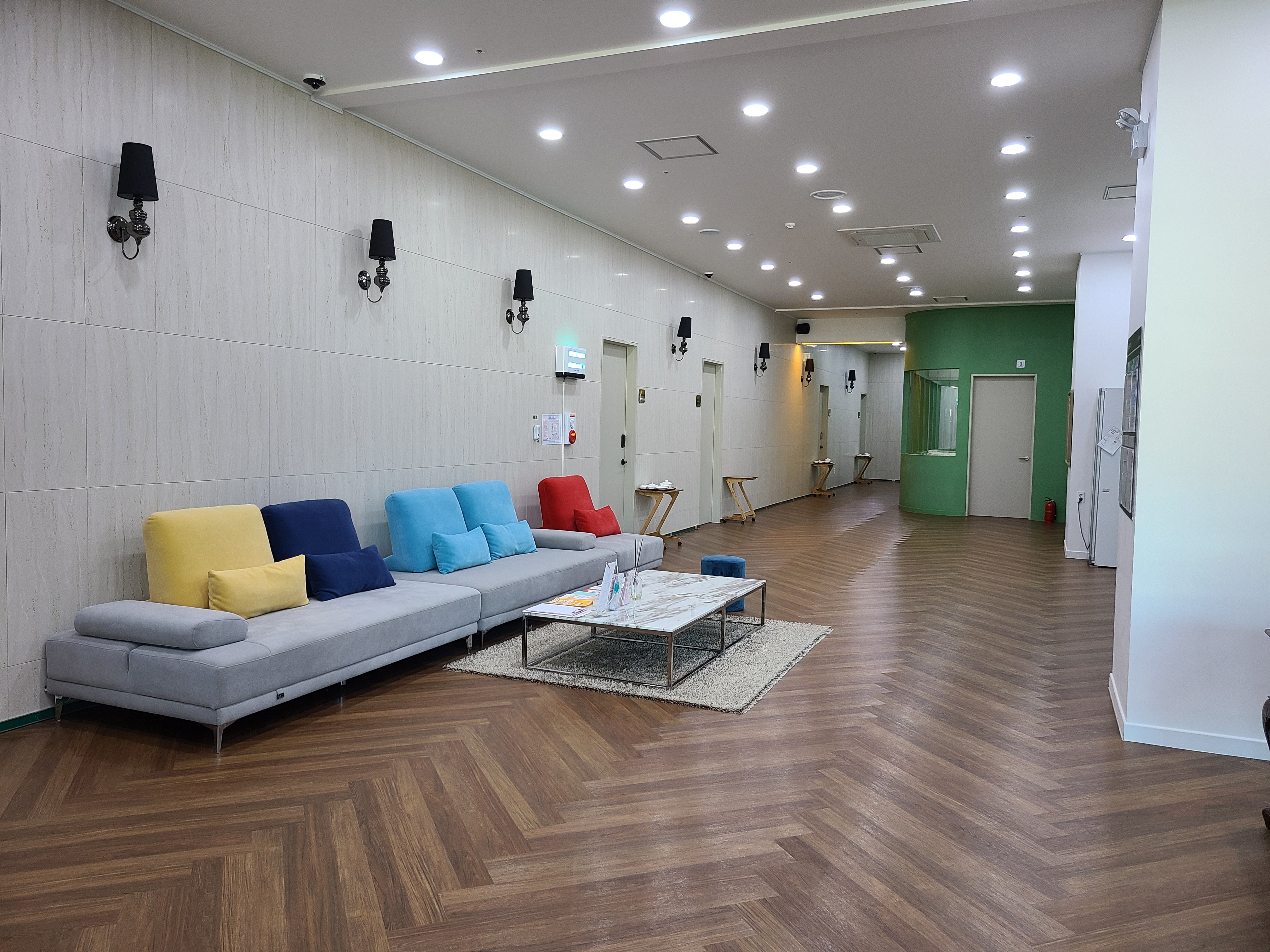 내부 계단을 통해 내려오면 제가 머물렀던 7층으로 이동할 수 있는데 공간의 구조는 8층과 비슷하지만 이곳엔 영화 감상실과 족욕실. 신생아 촬영실이 있어요.