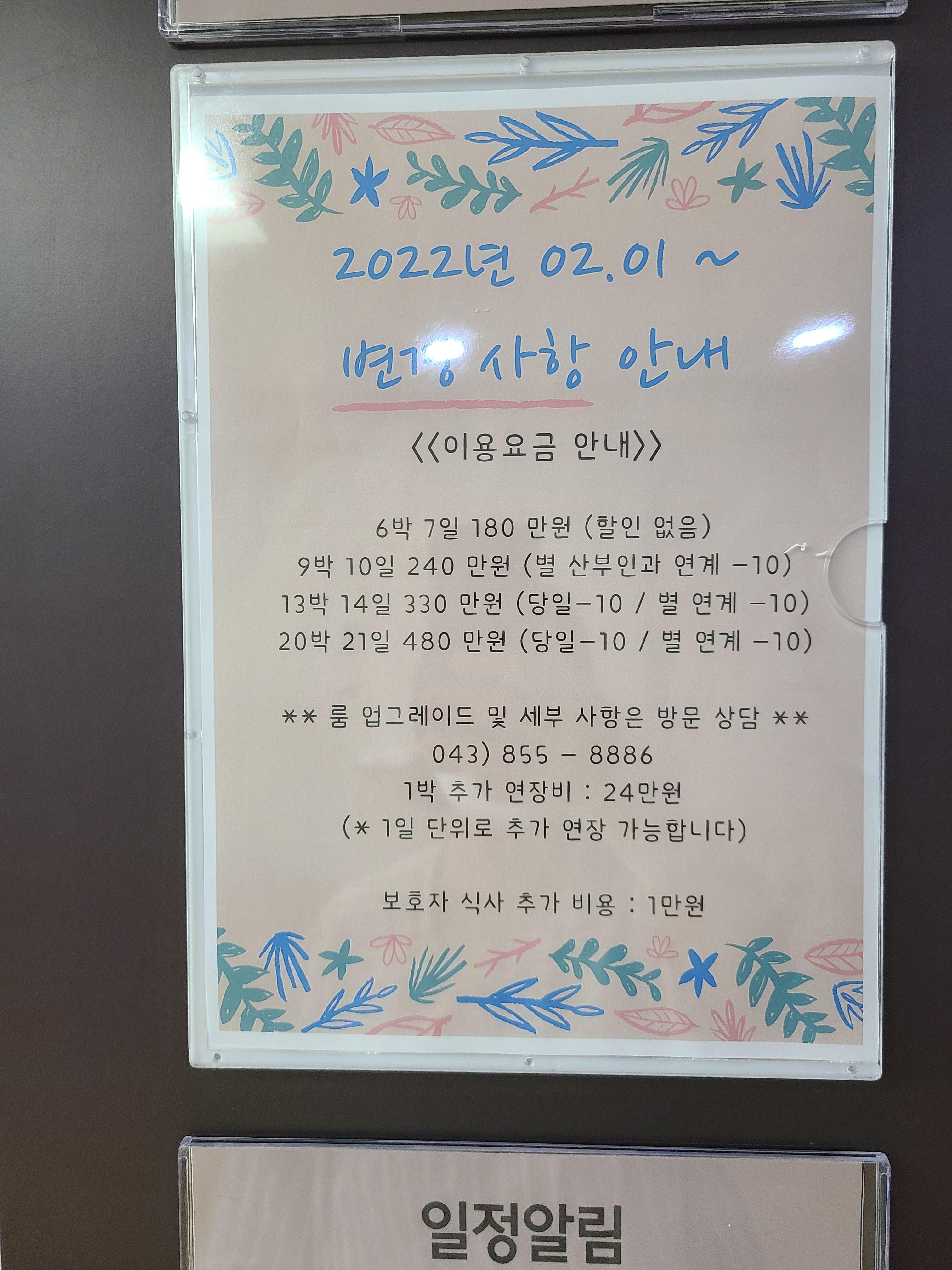 참! 조만간 조리원 비용이 물가상승분을 반영해 인상된다고 하니 정확한 가격은 조리원에 다시 문의해 보시는 게 좋을 것 같아요.