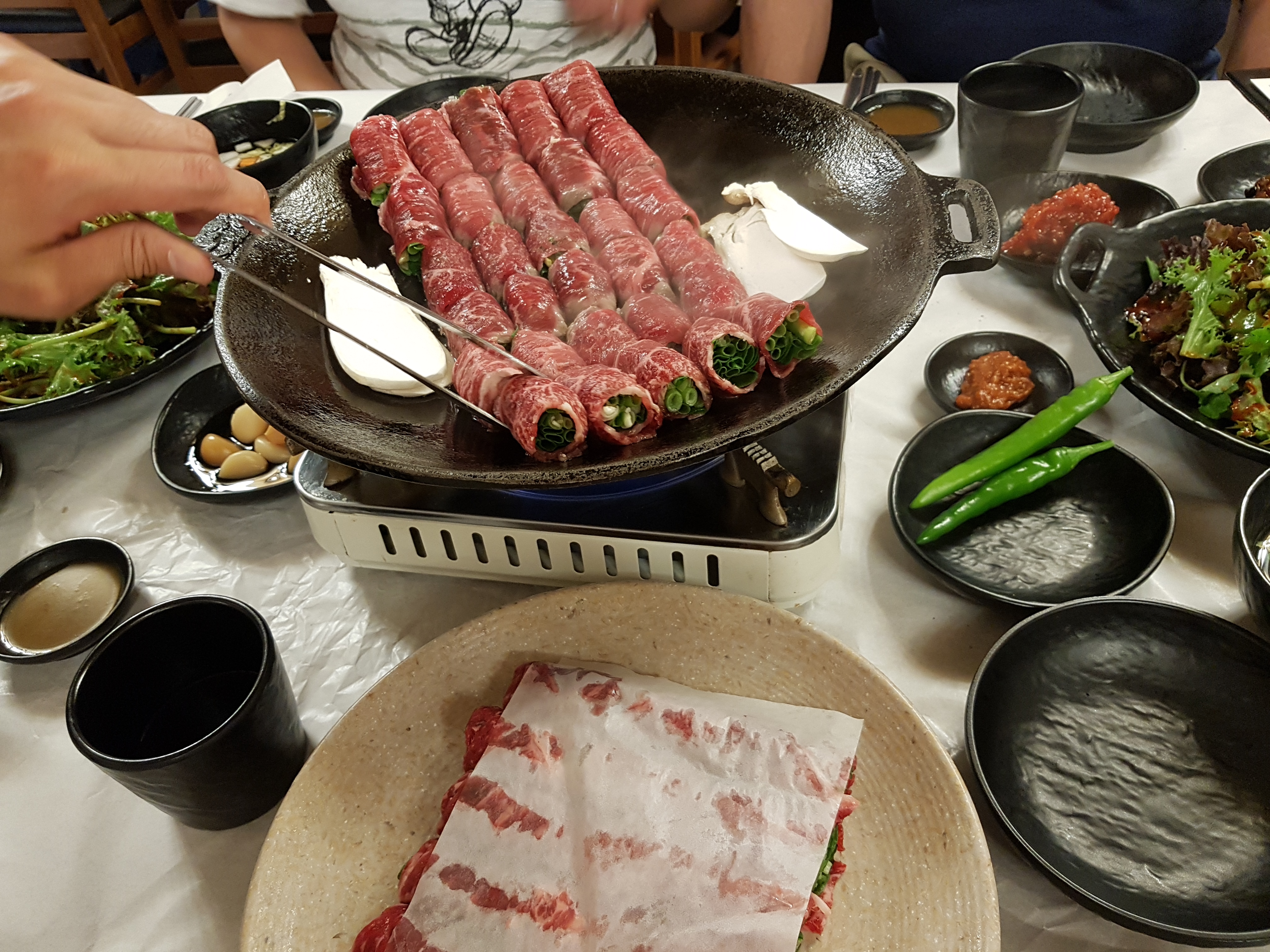 저희도 고기말이 4인분을 주문하고 고기를 다 먹은 후에 시래기 된장국과 밥 듀 공기를 넣어 비벼 먹었는데 모두들 배부르게 느낄 만큼의 음식 양이었답니다. 메뉴는 주문하자마자 거의 바로 준비되어 나왔고 같이 제공되는 밑반찬이나 겉절이 샐러드도 신선하고 맛있었어요.