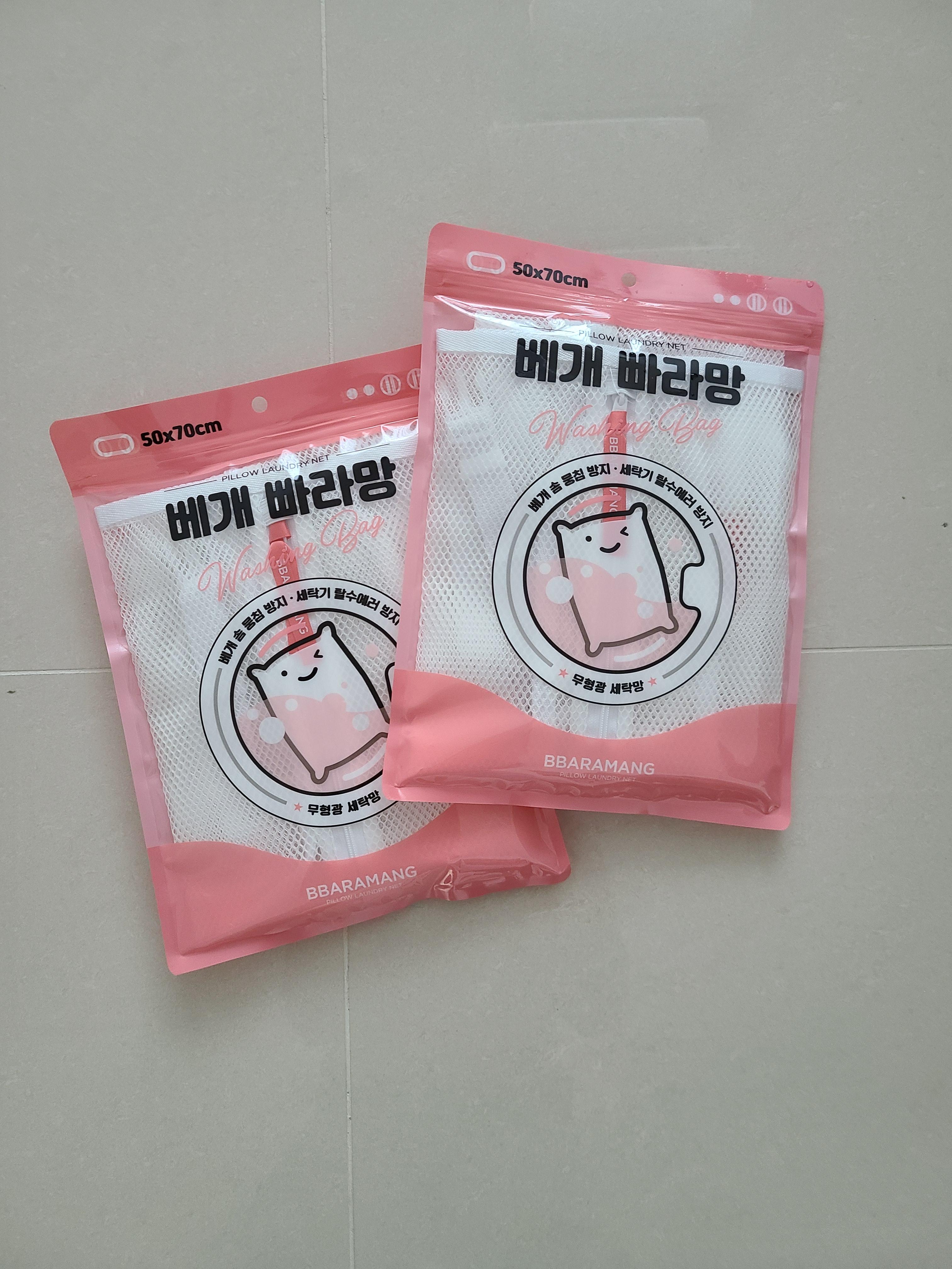 이 세탁망은 소형(40*60)과 대형 사이즈가 있는데 전 대형(50*70)사이즈로 구입하니 부피감이 큰 세탁물을 넣기에도 저희가 사용하는 베개를 넣기에도 딱 좋았어요.
