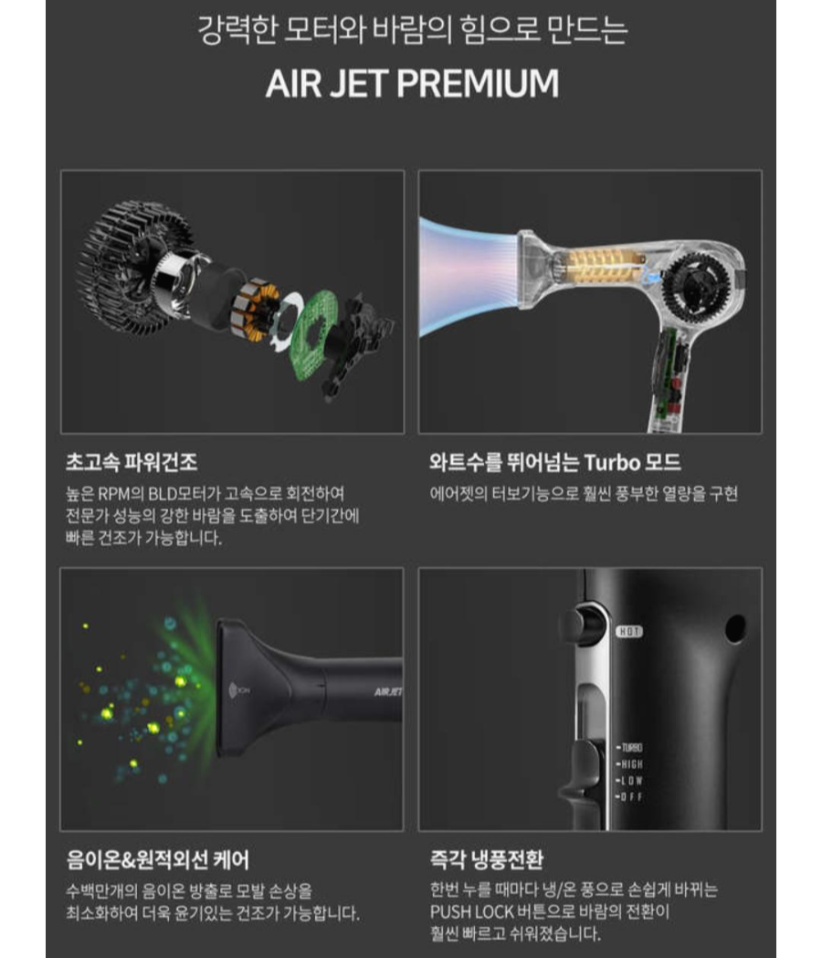 혹시 요즘, 드라이이기를 새로 구입해야겠단 생각을 가지고 있으시다면 JMW 에어젯 터보 드라이기 적극 추천드립니다.