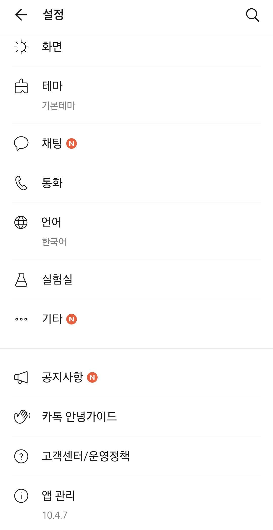카카오톡으로 들어가 우측 상단의 톱니바퀴 모양을 클릭해 주세요. 여기서 [전체 설정]을 눌러주시고 가장 하단의 [앱관리]를 선택해 줍니다.