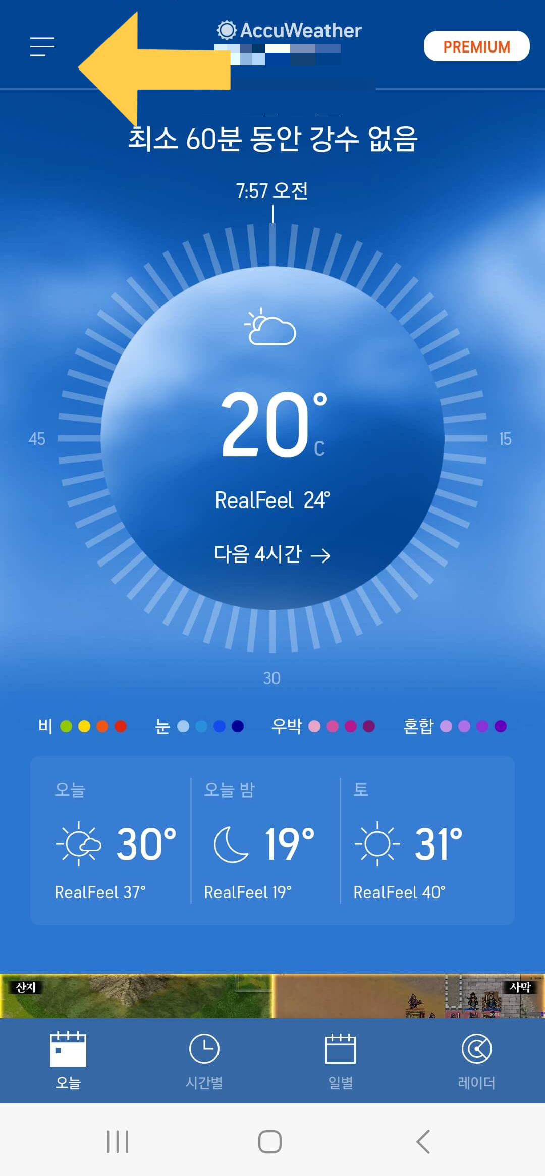 아큐웨더 설정변경하기아큐웨더 설정하기