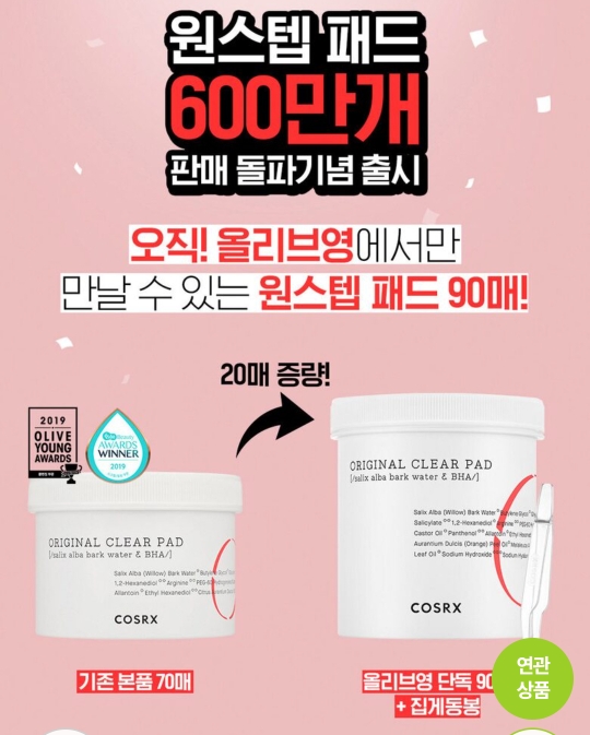 원랜 70매로 출시되지만 요즘 올리브영에서 기획 상품 처럼 20매를 더한 90매 제품을 출시해 판매중이니 코스알엑스 패드를 사용해보길 원했던 분들에게 좋은 행사가 아닐까 싶어요~