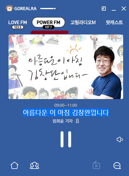 김창완 아저씨 방송은 파워 FM이니 이렇게 설정해두고